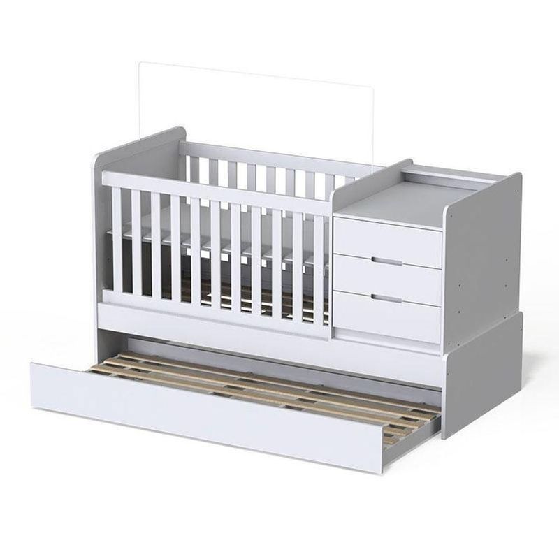 Berço Americano Multifuncional Cleo Branco Acetinado Com Colchão Ortobom - CarolinaBerço Americano Multifuncional Cleo Branco Acetinado com Colchão Ortobom - CarolinaChegou a hora de escolher o berço do bebê? Apresentamos mais uma linda opção para mamãe que procura qualidade, do bebê e bom preço, berço multifuncional Cléo, acompanha cama auxiliar e cômoda 3 gavetas, desenvolvido pela Carolina Móveis possui tudo o que o bebê vai precisar para ter uma noite de sono com total conforto e , confira:Berço Americano Multifuncional Cleo Branco Acetinado - CarolinaCaracterísticas técnicas:- 100% MDF- Pintura U.V Branco Acetinado- Sistema de pintura utiliza tinta atóxica que não faz mal a saúde do bebê- Utiliza colchão 130x70 cm- Grade fixa para maior do bebê- 2 regulagens no estrado do colchão- Acompanha cômoda 3 gavetas e cama auxiliar- Possui 4 rodízios sendo 2 com travas para maior - Lindo Design- Certificado INMETRO Dimensões:Altura: 112 cmLargura: 194 cmProfundidade: 86 cmPeso: 105 kgColchão Berço Americano Phisical 130x70 cm – OrtobomCaracterísticas Técnicas:- Tecido plano 100% poliéster- Placa de espuma em 100% poliuretano desempenho do INMETRO aprovada- Revestimento inferior em plástico impermeável- Proteção 100% espuma e tecido contra formação e colonização de ácaros, bactéria e fungos trazendo mais e auxiliando na saúde do bebê- Padrão americano- Produto de origem - Lindo design- Carinho e conforto que o seu bebê mereceDimensões:Altura: 10 cmLargura: 70 cmProfundidade: 130 cmOBS: Não realizamos a montagem, porem acompanha manual de instruções.