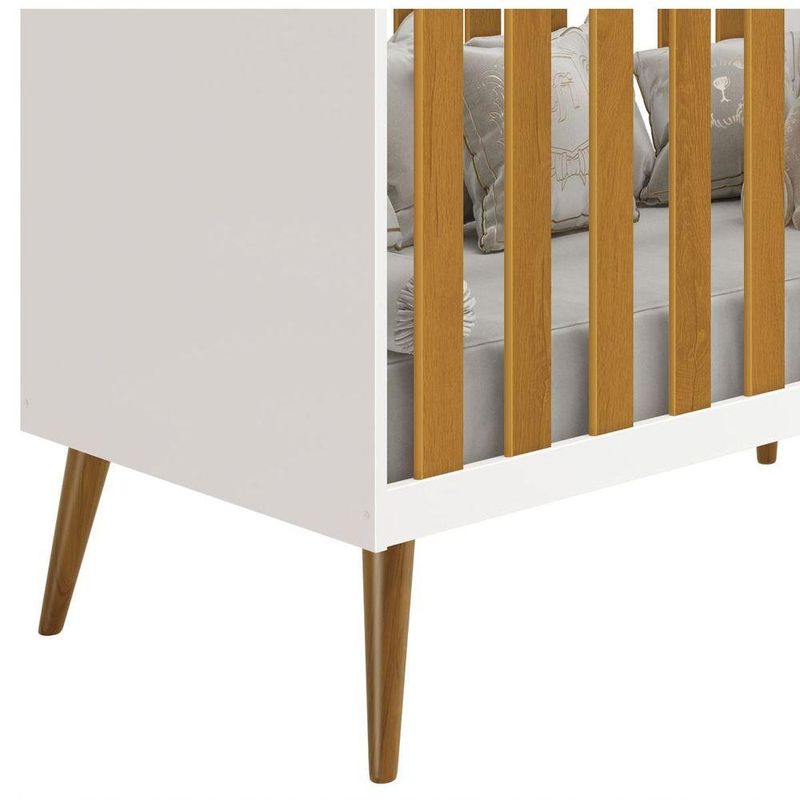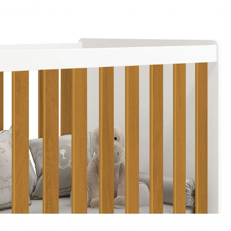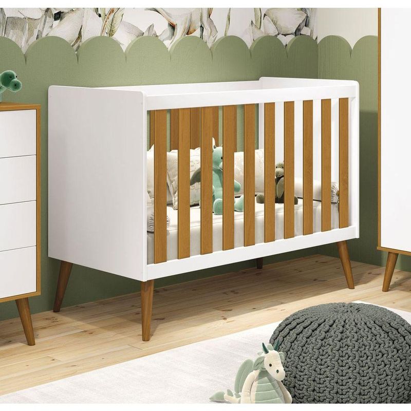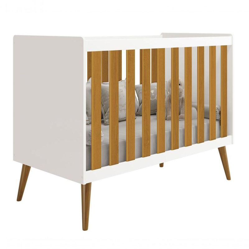 Berço Americano Retrô Isis Branco Fosco Com Savana Fosco - MoveisaquiO Berço Americano Retrô Isis - MóveisAqui possui design retrô que traz charme ao quartinho do seu baby, possui os pés em madeira maciça, com um desing atemporal combina com vários estilos de decoração. Além de poder transformar-se em mini cama, para que possa continuar a ser usado, mesmo a pós a transição do bebê.Dimensões do Produto Montado:Altura: 94 cmLargura: 133 cmProfundidade: 77 cmObservações:- Berço Certificado pelo INMETRO 009882/2022;- Transforma-se em mini cama;- Padrão Americano;- Acompanha suporte de mosquiteiro;- 03 regulagens de altura do estrado;- Colchão Recomendado: 130cm x 70cm x 12cm Densidade: D18 (colchão não incluso);- Pés na cor Madeira;- Pintura ultravioleta com acabamento fosco.