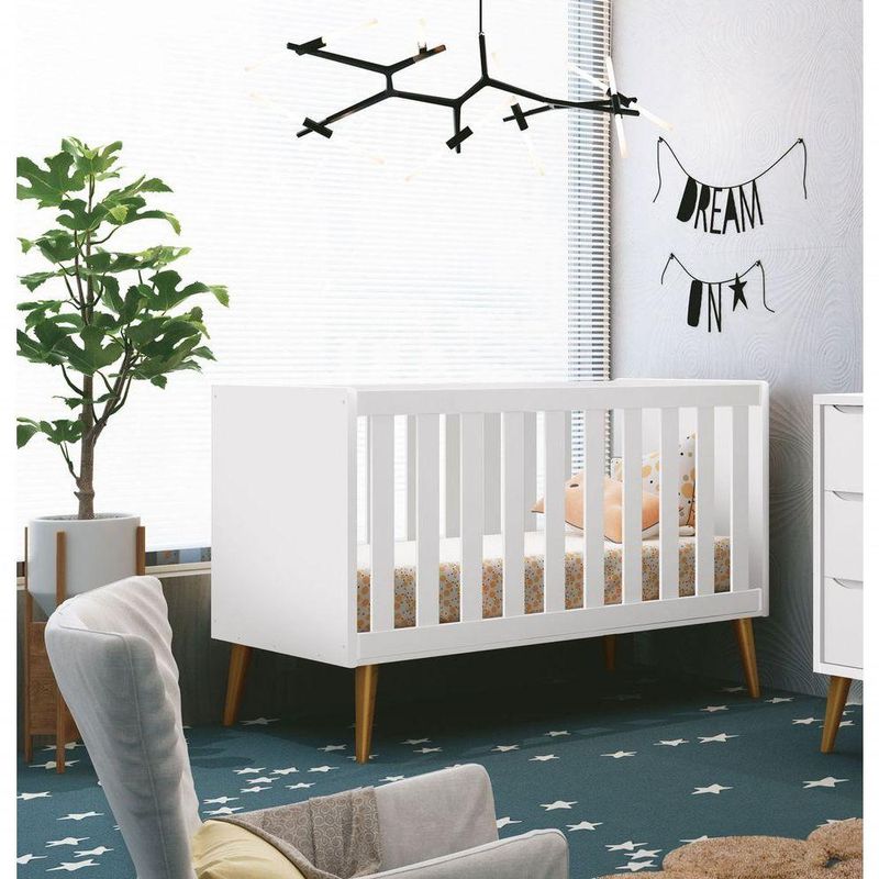 Berço Americano Théo New Branco Fosco Com Madeira - RellerO Berço Americano Theo New - RELLER exala personalidade e delicadeza no seu estilo retrô, possui os pés em madeira maciça no estilo palito, com um desing clean combina com vários estilos de decoração. Além de poder transformar-se em mini cama, para que possa continuar a ser usado, mesmo após a transição do bebê.Dimensões do Produto Montado:Altura: 95 cmLargura: 135 cmProfundidade: 76 cmObservações:- Berço Certificado pelo INMETRO 002666/2018;- Transforma-se em mini cama;- Padrão Americano;- Cantos arredondados;- Acompanha suporte de mosquiteiro;- 03 regulagens de altura do estrado;- Colchão Recomendado: 130cm x 70cm x 12cm Densidade: D18 (colchão não incluso);- Pés na cor Madeira;- Pintura ultravioleta com acabamento fosco;