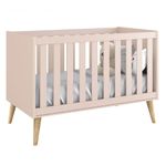 Berço Americano Théo New Rosa Fosco Com Natural - MoveisaquiO Berço Americano Theo New - MóveisAqui exala personalidade e delicadeza no seu estilo retrô, possui os pés em madeira maciça no estilo palito, com um desing clean combina com vários estilos de decoração. Além de poder transformar-se em mini cama, para que possa continuar a ser usado, mesmo após a transição do bebê.Dimensões do Produto Montado:Altura: 95 cmLargura: 135 cmProfundidade: 76 cmObservações:- Berço Certificado pelo INMETRO 002666/2018;- Transforma-se em mini cama;- Padrão Americano;- Cantos arredondados;- Acompanha suporte de mosquiteiro;- 03 regulagens de altura do estrado;- Colchão Recomendado: 130cm x 70cm x 12cm Densidade: D18 (colchão não incluso);- Pés na cor Natural;- Pintura ultravioleta com acabamento fosco;