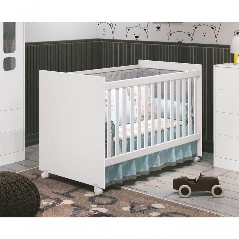 Berço Americano Tico Branco Brilho - MoveisaquiO Berço Americano Tico - MóveisAqui é o móvel ideal para que seu bebê possa ter noites tranquilas e confortáveis. Com um lindo design de linhas retas, ele irá agregar super a decoração desse quartinho tão especial, proporcionando segurança e acomchego ao seu baby.Dimensões do Produto Montado:Altura: 91 cmLargura: 133 cmProfundidade: 76 cmObservações:- Berço Certificado pelo INMETRO 003709/2018;- Padrão Americano;- Cantos arredondados;- 03 regulagens de altura do estrado;- 04 Rodízios, sendo 02 Rodízios com trava;- Acompanha suporte para mosquiteiro;- Colchão Recomendado:130cm x 70cm x 12cm. Densidade: D18 (colchão não incluso);- Pintura ultravioleta com acabamento brilho.