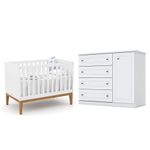 Berço Americano Unique Branco Soft Eco Wood - Matic E Cômoda Infantil Americano Branco Hp - HennBerço Americano Unique Branco Soft Eco Wood - Matic e Cômoda Infantil Americano Branco HP - HennConjunto infantil composto por Berço Americano Unique Branco Soft Eco Wood Matic e Cômoda Infantil Americano Branco HP Henn. O berço possui design moderno com acabamento Soft Eco Wood, estrutura resistente e estrado com regulagem de altura, garantindo conforto e segurança para o bebê. A cômoda oferece ótimo espaço para organização de roupas e acessórios, com visual clean e fácil de combinar. Ideal para um quarto de bebê funcional, elegante e aconchegante.Berço Americano Unique Branco Soft Eco Wood - MaticCaracterísticas técnicas:- Certificado de INMETRO- Desenvolvido 100% em MDF- Grade fixa- Utiliza colchão de 70cmx130cm (vendido separadamente)- Acompanha suporte para mosquiteiro- Transforma em mini cama- Estrado com 3 regulagens de altura- Pés em madeira- Pintura atóxica- Lindo DesignDimensões:Altura: 96 cmLargura: 136 cmProfundidade: 77 cmCômoda Infantil Americano Branco HP – HennCaracterísticas Técnicas:- Desenvolvido em MDP/ MDF- Frentes em MDF com usinagem em baixo relevo- Pintura na cor Branco HP- Acabamento em U.V Fosco- 1 Porta- 4 Gavetas com corrediças telescópicas- Prateleiras internas- Puxadores na cor bronze- Lindo designDimensões:Altura: 101 cmLargura: 126 cmProfundidade: 51 cmInformações importantes:- Nossas cargas possuem seguro, portanto, no ato da entrega, confira a quantidade de volumes recebida, e também o estado da embalagem. Se houver qualquer inconsistência, não assine o comprovante de entrega;- O armazenamento do produto no endereço de entrega é de responsabilidade do comprador. Evite apoiar o produto na vertical, bem como evite áreas que deixem o produto exposto a chuva ou umidade excessiva;- Pequenas variações de tonalidade são possíveis, em razão da diferença de resolução da tela onde o anúncio está sendo visualizado. Se notar diferença expressiva, comunicar a empresa antes de efetuar a montagem;- O serviço de entrega contratado contempla a entrega até a primeira área coberta ou portaria, não sendo coberto o ato de subir escadas/elevadores ou adentrar nas residências;- Não nos responsabilizamos pela montagem, desmontagem ou instalação do produto.