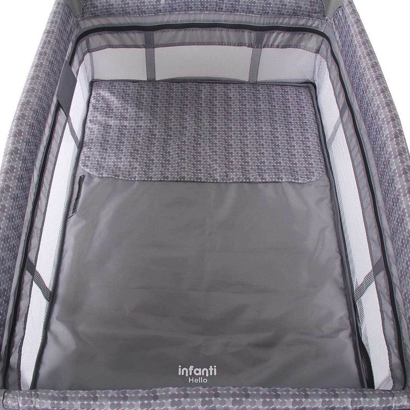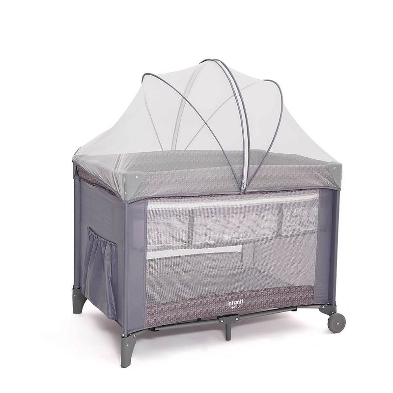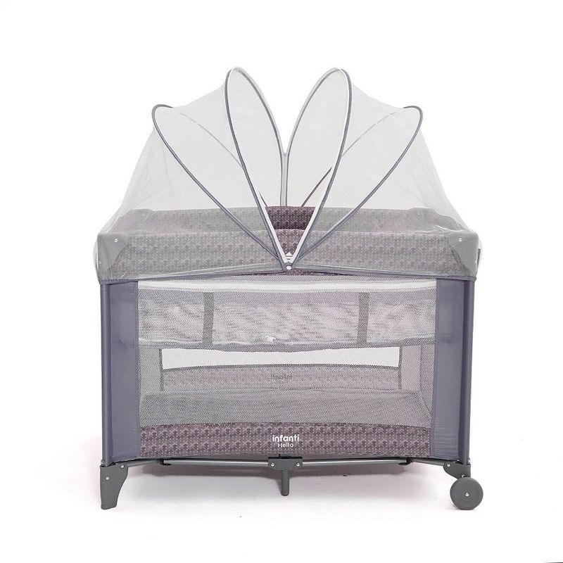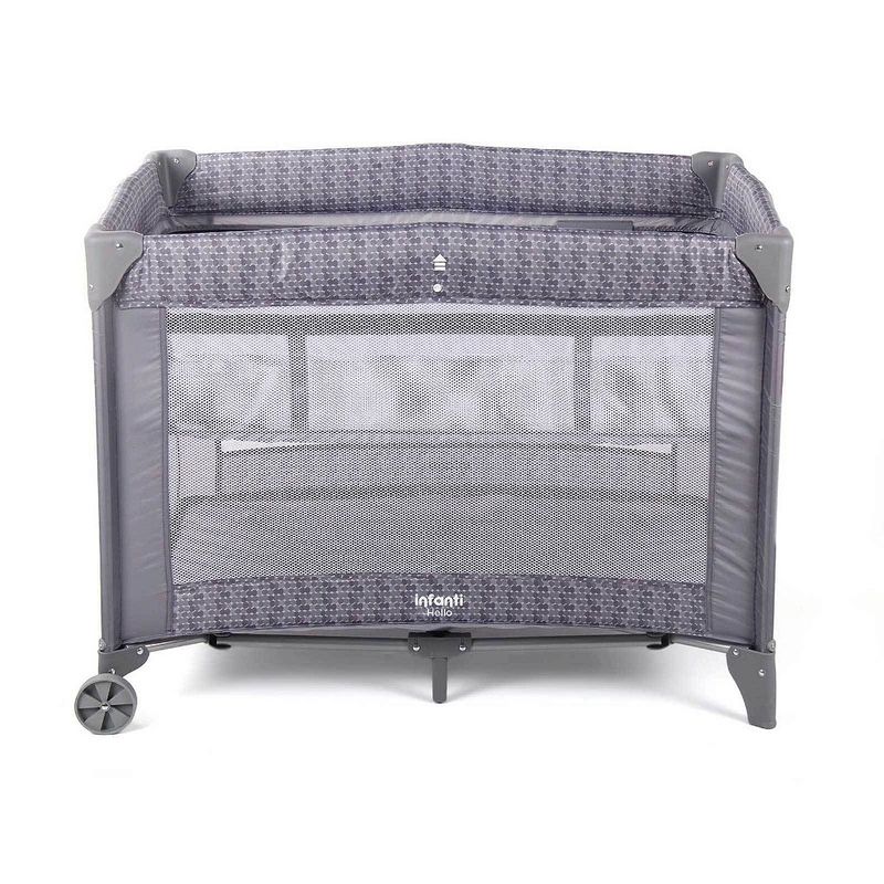 "Portátil e desmontável com bolsa de transporte, 2 alturas, bolso lateral e mosquiteiro elevado, com abertura central pelo zíper, fácil acesso sempre que precisar. Tenha sempre o local seguro e confortável para o seu filho ter um soninho tranquilo em todos os lugares com o berço Hello da Infanti. Portátil e desmontável, para uso em casa ou em viagens vem com bolsa de transporte que auxilia também no armazenamento quando não estiver em uso. As 2 opções de altura acompanham a fase do bebê: na mais alta, que já vem pré-montada para facilitar o uso, é indicado para o recém-nascido, até aproximadamente 6 meses ou o bebê começar a aprender a sentar sozinho. Depois o uso continua na altura de baixo para os maiorzinhos com um suporte para até 18 kg de peso! O mosquiteiro com arcos, elevado, deixa o berço mais arejado e fica posicionado longe do bebê, muito mais seguro, é fácil de instalar e sua abertura com zíper permite o acesso à criança, sempre que necessário, sem precisar remover, com muito mais praticidade. O colchonete possui zíper e trava, impedindo que ele se movimente, sendo super seguro, dando tranquilidade aos pais. Garantia de 2 anos mediante registro gratuito no site infanti.com.br em até 1 ano após a compra. Registro: 000091/2019 2 opções de altura Colchonete com zíper e trava de segurança Laterais em tela mais arejado e com melhor visibilidade Porta-objetos: bolso lateral para até 2kg Mosquiteiro elevado com arcos e zíper para abertura Rodas que facilitam mover o berço Portátil e desmontável com bolsa de transporte"