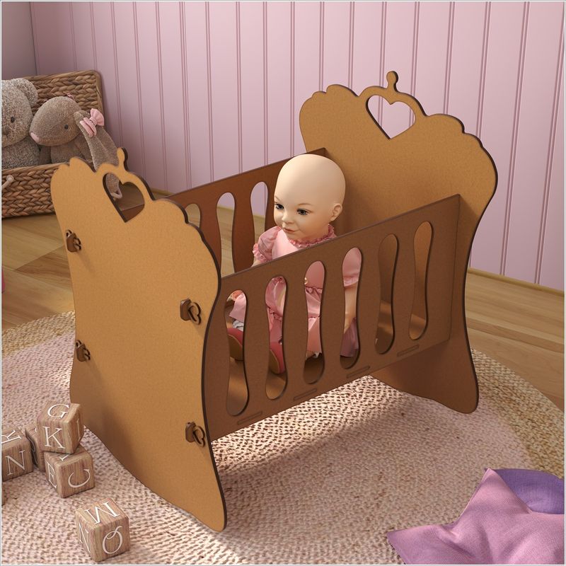 Berço Infantil de Boneca Bebê Reborn Natural Transforme o momento da brincadeira com um berço encantador, perfeito para acomodar bonecas bebê reborn com muito charme e elegância! Proporcione um cantinho especial para a sua boneca bebê reborn com este lindo berço infantil, feito em MDF de 4mm com acabamento refinado. Ideal para quem busca um acessório delicado e resistente para tornar a brincadeira ainda mais realista.Dimensões do berçoLargura: 42 cmProfundidade: 52,5 cmAltura: 55,5 cm CaracteristicasDesign encantador: laterais com recortes delicados e uma linda coroa, trazendo um toque de realeza ao quartinho de brinquedo.Material resistente: fabricado em MDF de 4mm, garantindo durabilidade e estabilidade.Acabamento sofisticado: pintura UV na cor branca, que proporciona um visual clean e elegante.Montagem simples e segura: sistema de encaixe com presilhas decorativas, dispensando o uso de parafusos.Laterais decoradas com presilhas desenhadas em MDF, proporcionando um toque sofisticado e artesanal.