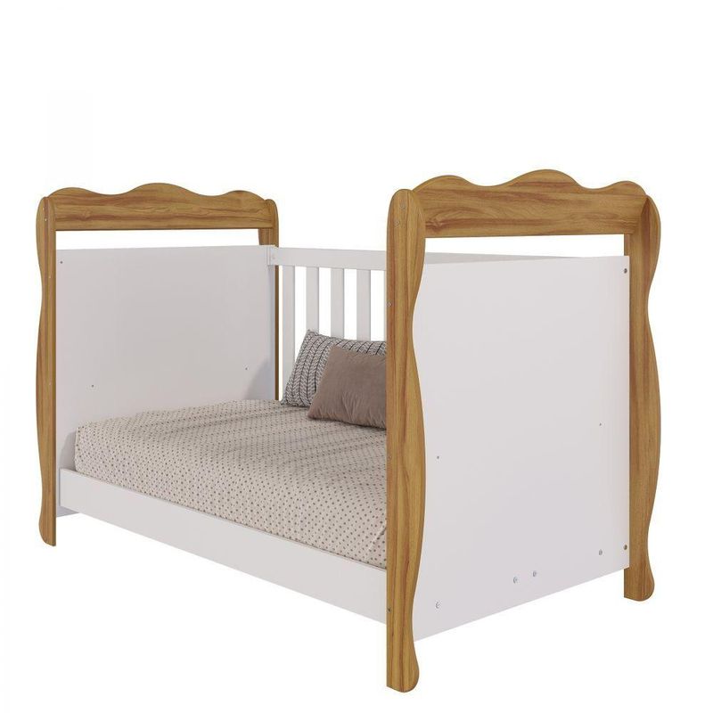 Berço Infantil Lisi - Moveis Peroba Amendoa/brancoO Berço Lisi é um produto padrão americano, fabricado 100% em MDF e possui pintura atóxica. Seu estrado possui altura regulável e é fabricado em MDF e madeira/laminado de madeira. As grades são fabricadas em chapas de 25 e 12 mm e as cabeceiras são em chapa de 12 mm. Possui bordas arredondadas e laqueadas, proporcionando maior e uma sensação agradável ao toque. Acompanha suporte de cortinado e possui opção de transformação em minicama e minissofá.MedidasAltura: 99 cmLargura: 148 cmProfundidade: 78,4 cmMaterial PrincipalMDFMaterial dos FundosHDFAcabamento PrincipalVerniz UVLimpeza e ConservaçãoPara limpeza utilizar somente pano limpo e macio, ligeiramente umedecido em água (apenas o bastante para remover a poeira), seguido de um pano seco.Colchão Incluso NãoPadrão do Berço AmericanoComprimento do Colchão (cm) 130Largura do Colchão (cm) 70Altura Máxima Permitida do Colchão (cm) 12Necessita de MontagemSimComplexidade da MontagemAlta: deve ser montado por um montador especializado.Observações:- Todos os produtos têm três (03) meses de garantia fornecida pelo fornecedor- As imagens são meramente ilustrativas, os objetos que ambientam as fotos não acompanham o produto.- Pode haver alguma diferença de tonalidade entre a foto e o produto, devido ao tratamento de imagens e a calibração do monitor- A é realizada por transportadora, não nos responsabilizamos, no ato da por desmontagens, subir escadas/elevadores ou por guincho para apartamentos- Eventuais despesas são de responsabilidade do cliente- Confira as dimensões dos volumes e certifique-se de que passará normalmente por supostos elevadores, portas, escadas ou corredores- Ao receber a mercadoria, verifique as condições da embalagem, caso haja alguma , com nosso - Nossa empresa não se responsabiliza pela montagem dos produtos, mas todos os produtos possuem manual de montagem. Recomendamos que a montagem seja feita por de sua confiança.