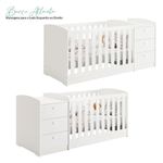 Berço Multifuncional Atlanta E Guarda Roupa Americano 4 Portas Henn Ambiente Branco Fosco Com Colchão Gazin - RellerBerço Multifuncional Atlanta e Guarda Roupa Americano 4 Portas Henn Ambiente Branco Fosco com Colchão Gazin - RellerNa hora de decorar o quartinho do bebê escolha móveis que vão unir conforto e praticidade! Apresentamos o Berço Multifuncional Atlanta da Reller e a Guarda Roupa Americano 4 Portas desenvolvido pela Henn. Berço padrão Americano, cômoda acoplada, gavetas com corrediças telescópicas e com 3 opções diferentes de montagem de mini cama podendo acompanhar o desenvolvimento da criança e utilizar por muito tempo, também acompanha o colchão Gazin no padrão americano 70x130. O Guarda Roupa conta com cabideiros em alumínio, frente com usinagem em baixo relevo, gavetas com corrediças metálicas e puxadores em ABS na cor bronze. Confira mais detalhes abaixo e não deixe de adquirir produtos fabricados com a mais alta qualidade! Características Técnicas Berço Multifuncional Atlanta - Reller: - Pintura na cor Branco - Acabamento UV fosco - Sistema de pintura atóxica que não faz mal ao bebê - Berço padrão americano - Grade fixa - 3 opções de mini cama - Cômoda podendo ser montada em ambos os lados - Gavetas com corrediças telescópicas - Puxadores em PVC - Possui travas de segurança - Possui 3 gavetas - Utiliza colchão 130x70cm - Lindo designDimensões:Altura: 85 cm Largura: 185 cm Profundidade: 77 cm Guarda Roupa Americano 4 Portas - Henn: - Desenvolvido em MDP/ MDF - Frentes em MDF - Acabamento em U.V Fosco - 4 Portas - 4 Gavetas com corrediças telescópicas - Portas e gavetas com usinagem em baixo relevo - Puxadores em ABS na cor bronze - Cabideiro em alumínio - Lindo design Dimensões: Altura: 218 cm Largura: 155 cm Profundidade: 49 cm Colchão Americano 70x130 - Gazin - Revestimento superior em tecido Plano - Espuma flexível convencional poliuretana - Espuma D18 que não é propenso ao acúmulo de poeira e materiais orgânicos - Madeira de Reflorestamento em eucalipto - Material sintético e de baixa deformação permanente - Revestimento superior e lateral em tecido Plano - Padrão Americano - Fácil higienização - Lindo Design Dimensões: Altura: 10 cm Largura: 70 cm Profundidade: 130 cm Informações importantes: - Nossas cargas possuem seguro, portanto, no ato da entrega, confira a quantidade de volumes recebida, e também o estado da embalagem. Se houver qualquer inconsistência, não assine o comprovante de entrega; - O armazenamento do produto no endereço de entrega é de responsabilidade do comprador. Evite apoiar o produto na vertical, bem como evite áreas que deixem o produto exposto a chuva ou umidade excessiva; - Pequenas variações de tonalidade são possíveis, em razão da diferença de resolução da tela onde o anúncio está sendo visualizado. Se notar diferença expressiva, comunicar a empresa antes de efetuar a montagem; - O serviço de entrega contratado contempla a entrega até a primeira área coberta ou portaria, não sendo coberto o ato de subir escadas/elevadores ou adentrar nas residências; - Não nos responsabilizamos pela montagem, desmontagem ou instalação do produto.