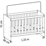 Berço Nacional Mel Branco Brilho - RellerO Berço Nacional Mel - RELLER é o móvel ideal para que seu bebê possa ter noites tranquilas e confortáveis. Com um lindo design de linhas retas, ele irá agregar super a decoração desse quartinho tão especial, proporcionando segurança e acomchego ao seu baby.Dimensões do Produto Montado:Altura: 91 cmLargura: 133 cmProfundidade: 66 cmObservações:- Berço Certificado pelo INMETRO 003710/2018;- Padrão BRASILEIRO;- Cantos arredondados;- 03 regulagens de altura do estrado;- 04 Rodízios, sendo 02 Rodízios com trava;- Acompanha suporte para mosquiteiro;- Colchão Recomendado:130cm x 60cm x 12cm. Densidade: D18 (colchão não incluso);- Pintura ultravioleta com acabamento brilho.