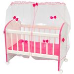 Descrição do produto: Brincar de boneca é uma terapia para a criança, faz parte da educação infantil pois ajuda a desenvolver a sensibilidade, cuidado e carinho com o próximo. O mundo de fantasias ficará completo com o Berço Magia! Acompanha colchãozinho para aconchego da boneca, e mosquiteiro com laços, além de fácil locomoção com rodízios. Idade mínima recomendada 3 anos, idade máxima 9 anos. Dimensões do produto (L x A x P) 68 x 56 x 41 cm Altura do suporte ao chão: 77 cm Altura do colchão ao suporte: 55 cm Medida interna: (L x P) 65 x 35 cm Características: Estrutura em MDP de 15mm. Cantos arredondados com borracha. Grade em madeira. Acompanha suporte de ferro com mosqueteiro. Colchãozinho. Pintura atóxico verniz U.V. Sistema de montagem com parafusos, acompanha todos os acessórios para montagem. Observações importantes: A montagem será de responsabilidade do comprador. Responsabilizamo-nos pela entrega em todo território nacional, até onde as rodovias alcançam, entregas fluviais ou aéreas devem ser cotadas a parte. As imagens são ilustrativas, não acompanham objetos de decoração e eletrônicos. Não nos responsabilizamos, no ato da entrega, por subir escadas/elevadores ou transporte por guincho em apartamentos. Eventuais despesas são de responsabilidade do comprador. Confira as dimensões do produto e certifique-se de que passará normalmente por supostos elevadores, portas, escadas e/ou corredores de sua residência.