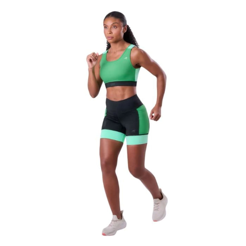 Bermuda Authen Feminino Grit Bossa 3 Bolsos 15cm Preto/Verde/Menta