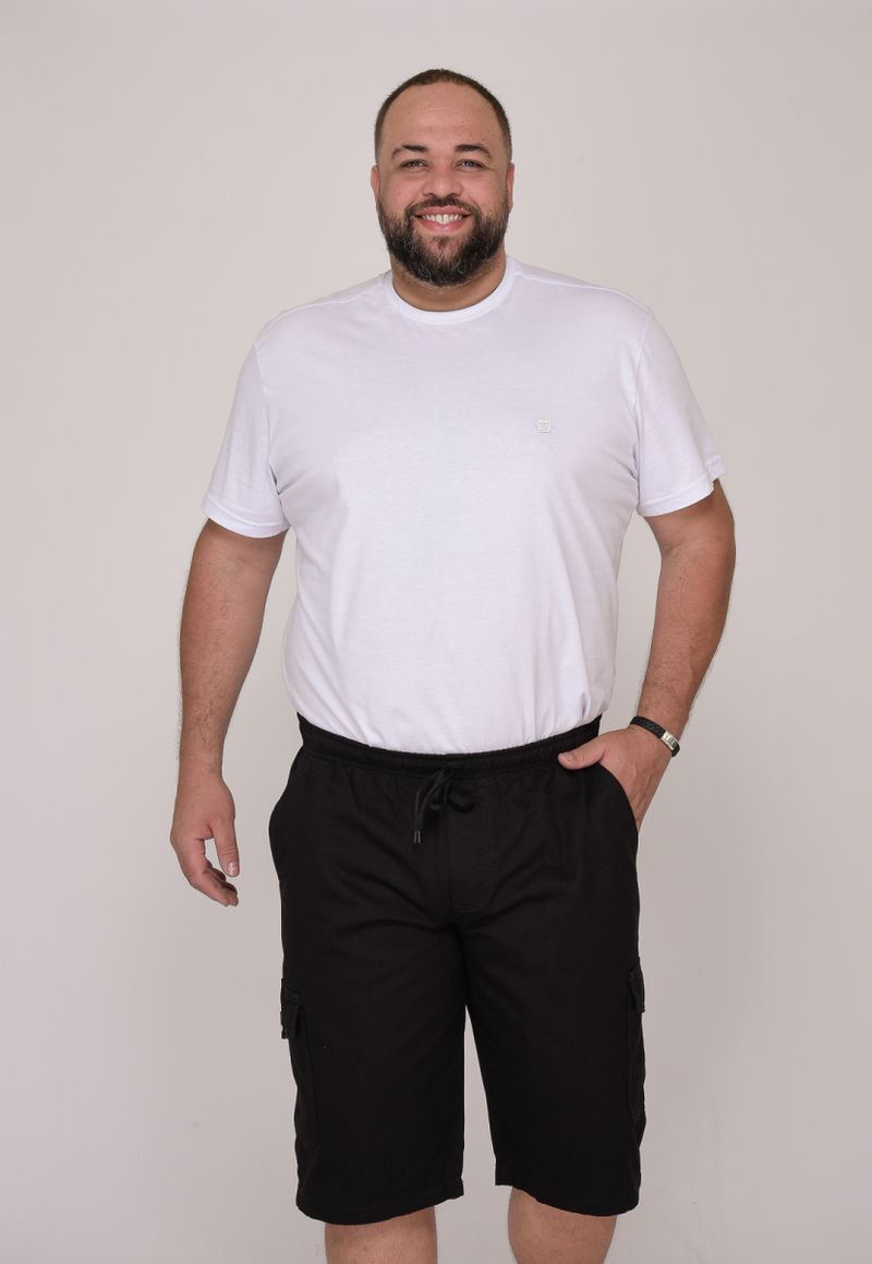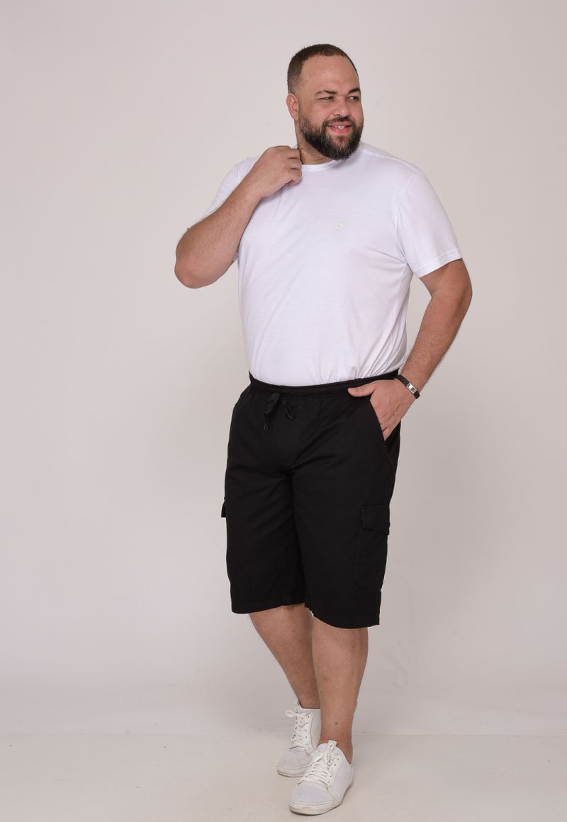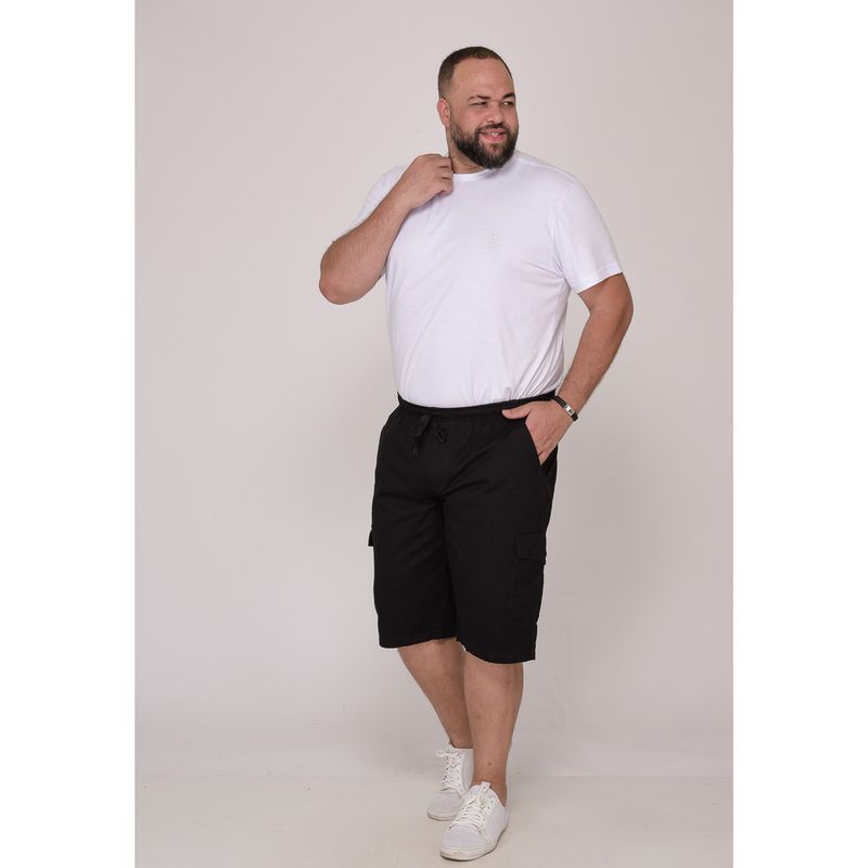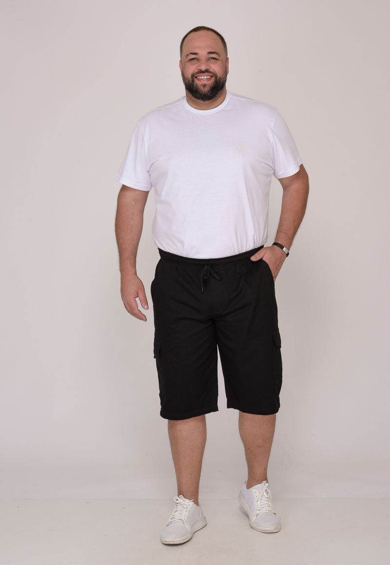 Bermuda Plus Size em cós elástico de sarja. Cintura em elástico com cordão ajustador. Estilo despojado em uma modelagem mais larga, propocionando um estilo mais casual. Tecido que garante mobilidade e conforto, 100% algodão. Tamanhos GG e EXG. Veja a tabela de medidas para conferir seu tamanho. tamanho GG (50 a 52): cintura 100 a 110 cm; comprimento 67 cm; gancho 34 cm; quadril 136 cm; bainha 64 cm. tamanho EXG (54 a 56): cintura 106 a 116 cm; comprimento 67 cm; gancho 34 cm; quadril 142 cm; bainha 66 cm.