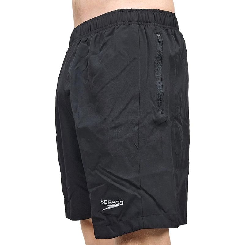 DescriçãoA Bermuda Speedo Média com Zíper é a peça curinga que une praticidade e um design moderno para o seu lifestyle. Desenvolvida para quem não abre mão do bem-estar, ela oferece um toque macio e aconchegante, ideal tanto para momentos de lazer quanto para o uso no dia a dia.Seu grande diferencial está na funcionalidade: conta com bolsos laterais com fechamento em zíper, garantindo que seus itens essenciais, como chaves e celular, fiquem totalmente seguros durante o movimento. Além disso, possui um prático bolso interno para pequenos objetos. O ajuste é personalizado através de um cordão regulador no cós, proporcionando o caimento ideal para qualquer biotipo.Principais Diferenciais: Segurança Total: Bolsos laterais com zíper para maior tranquilidade. Ajuste Perfeito: Cós elástico com cordão regulador externo. Versatilidade: Design clean que combina com diversas ocasiões. Conforto Premium: Tecido de alta qualidade que proporciona suavidade ao toque.Essa peça é perfeita para quem busca por estilo e qualidade durante o dia inteiro!Modelo: Bermuda Média Zíper;Cor: Preto;Gênero: Masculino;Marca: Speedo;Composição: 95% Poliéster e 5% Elastano;Tabela de MedidasMedidas Aproximadas (Largura Quadril x Comprimento):P: 38cm x 50cm;M: 40cm x 52cm;G: 42cm x 54cm;GG: 44cm x 56cm;3G: 46cm x 58cm;