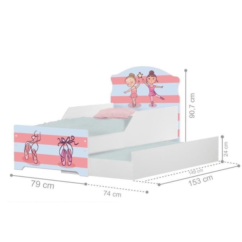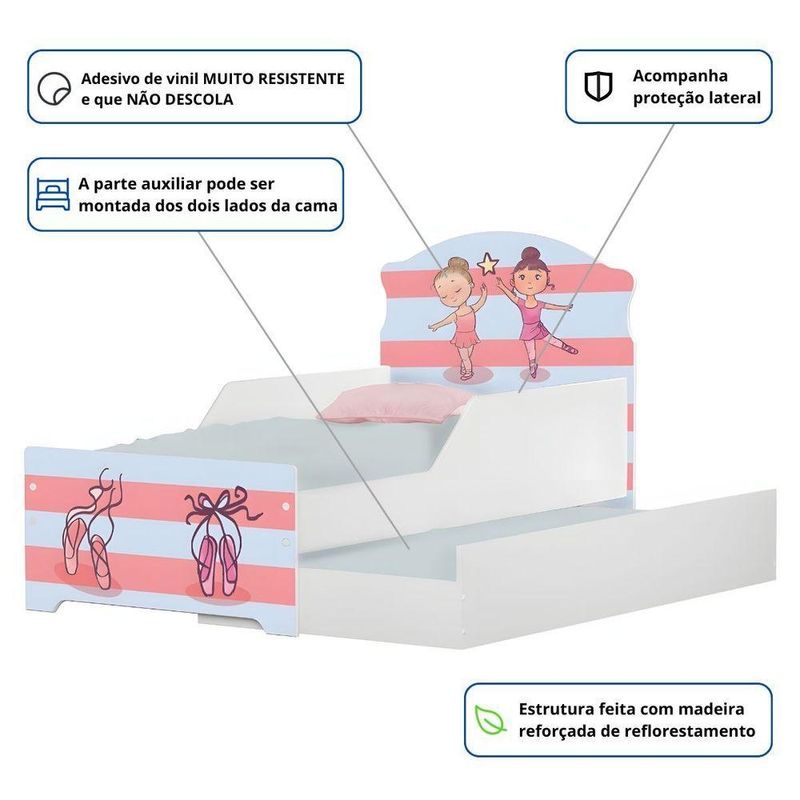 Bi Cama Infantil 153cm X 79cm Kmcb BailarinasPerfeita para criar um espaço aconchegante, segura e cheio de diversão, nossa bi cama infantil combina conforto, estilo e praticidade. Ela conta com proteção lateral, garantindo ainda mais segurança durante o sono e as brincadeiras. Com designs coloridos e detalhes que estimulam a imaginação, ela é a escolha ideal para deixar o quarto do seu filho ainda mais especial. Feita com materiais de alta qualidade e estrutura resistente, garante segurança e durabilidade para os momentos de descanso e brincadeira. Garanta já a cama que vai fazer o sorriso do seu pequeno brilhar!Especificações Técnicas da Bi Cama Infantil:- Altura: 90,7cm;- Largura: 79cm;- Profundidade: 153cm;- Peso: 31kg;- Peso Suportado: 40kg (distribuídos);Diferenciais da Bi Cama Infantil:- Material da Estrutura: Estrutura feita com madeira reforçada de reflorestamento.- Adesivo: Adesivo de vinil MUITO RESISTENTE e que NÃO DESCOLA.- Acompanhamentos: Acompanha proteção lateral.Recomendações de limpeza:-Limpar com flanela limpa e seca. Não molhar o móvel e não expor em lugar úmido ou próximo de fontes de calor. Não usar produtos abrasivos.Observações Importantes:- NÃO ACOMPANHA COLCHÃO; medidas para o colchão: 70cm x 150cm.- As imagens ambientadas são meramente ilustrativas e podem apresentar itens que não compõe o produto;- Objetos decorativos que aparecem na foto não acompanham o produto;- A Bi Cama Infantil chegará desmontada para você, embora a dificuldade de montagem seja baixa, recomendamos que seja feita por um profissional;- Confira as dimensões antes da compra e certifique-se de que o produto passará por elevadores, portas e corredores, já que nossa entrega não inclui a subida de lances de escada, ou o lançamento de produtos;- Ao receber seus produtos, verifique no ato do recebimento qualquer dano na embalagem. Caso tenha alguma avaria, favor não assinar o comprovante de recebimento;- Produto para uso residencial em ambiente interno, não devendo ficar exposto diretamente ao sol, calor e umidades excessivas.