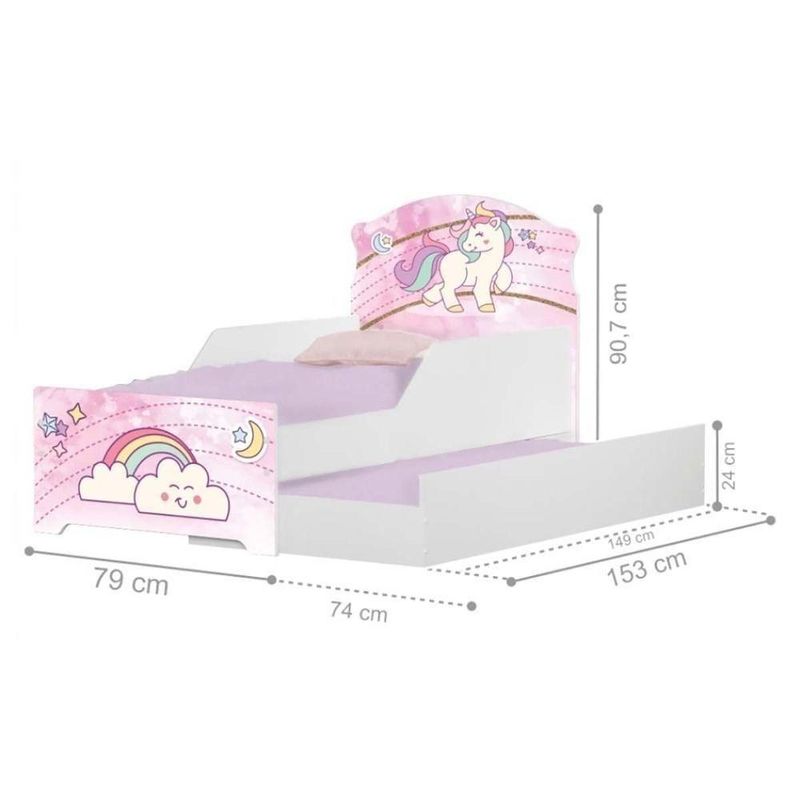 Bi Cama Infantil 153cm X 79cm Kmcb UnicornioPerfeita para criar um espaço aconchegante, segura e cheio de diversão, nossa bi cama infantil combina conforto, estilo e praticidade. Ela conta com proteção lateral, garantindo ainda mais segurança durante o sono e as brincadeiras. Com designs coloridos e detalhes que estimulam a imaginação, ela é a escolha ideal para deixar o quarto do seu filho ainda mais especial. Feita com materiais de alta qualidade e estrutura resistente, garante segurança e durabilidade para os momentos de descanso e brincadeira. Garanta já a cama que vai fazer o sorriso do seu pequeno brilhar!Especificações Técnicas da Bi Cama Infantil:- Altura: 90,7cm; - Largura: 79cm; - Profundidade: 153cm; - Peso: 31kg; - Peso Suportado: 40kg (distribuídos);Diferenciais da Bi Cama Infantil:- Material da Estrutura: Estrutura feita com madeira reforçada de reflorestamento. - Adesivo: Adesivo de vinil MUITO RESISTENTE e que NÃO DESCOLA. - Acompanhamentos: Acompanha proteção lateral.Recomendações de limpeza:-Limpar com flanela limpa e seca. Não molhar o móvel e não expor em lugar úmido ou próximo de fontes de calor. Não usar produtos abrasivos.Observações Importantes: - NÃO ACOMPANHA COLCHÃO; medidas para o colchão: 70cm x 150cm. - As imagens ambientadas são meramente ilustrativas e podem apresentar itens que não compõe o produto; - Objetos decorativos que aparecem na foto não acompanham o produto; - A Bi Cama Infantil chegará desmontada para você, embora a dificuldade de montagem seja baixa, recomendamos que seja feita por um profissional; - Confira as dimensões antes da compra e certifique-se de que o produto passará por elevadores, portas e corredores, já que nossa entrega não inclui a subida de lances de escada, ou o lançamento de produtos; - Ao receber seus produtos, verifique no ato do recebimento qualquer dano na embalagem. Caso tenha alguma avaria, favor não assinar o comprovante de recebimento; - Produto para uso residencial em ambiente interno, não devendo ficar exposto diretamente ao sol, calor e umidades excessivas.
