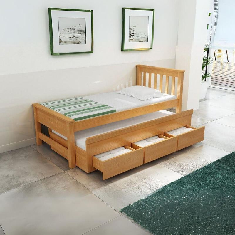 Bicama 3 Gavetas Esmeralda Cor Mel + 2 Colchões Ortobom D28A Bicama com 3 Gavetas Esmeralda + 2 Colchões Ortobom D28 é a escolha ideal para quem busca praticidade e elegância.Feita em madeira maciça Pérola, oferece durabilidade e um design sofisticado que se adapta a qualquer decoração.Características PrincipaisMaterial: Madeira Maciça PérolaDimensões: 206cm (C) x 100cm (L) x 107cm (A)Peso Suportado: Até 150 kg por camaGavetas: 3 gavetas com corrediças telescópicasCores Disponíveis: Avelã, Castanho, Imbuia, MelColchões: Colchões Espuma Solteiro D28 Ortobom com tecnologia Anti acaros e Antifugico.Dimensões do Colchão: 188cm (C) x 96cm (L) x 14cm (A)Peso Suportado: Até 150 Kg por colchãoFuncionalidadesEstrutura Resistente: Garante estabilidade e longa vida útil.Armazenamento: 3 gavetas espaçosas para melhor organização.Design Elegante: Disponível em diversas cores para combinar comseu quarto.BenefíciosDurabilidade: Madeira de alta qualidade para um uso prolongado.Versatilidade: Oferece uma cama extra para visitas.Facilidade de Montagem: Sistema de montagem simples e prático.Especificações Técnicas Bicama:Altura: 94cmLargura: 100cmComprimento: 206cmAuxiliar: 94cmPeso Total: 81kgEspecificações Técnicas Colchões:Altura: 14cmLargura: 88cmComprimento: 188cmPeso Total: 10kgItens Inclusos1x Bicama com Gavetas2x Colchões Ortobom Espuma D28Manual de InstruçõesGarantia e SuporteGarantia: 3 meses contra defeitos de fabricaçãoSuporte: Atendimento ao cliente via telefone e e-mailSobre a MarcaA Mundo Kaza é reconhecida pela alta qualidade de seus produtos e pelo design inovador, sempre focada na satisfação e bem-estar dos seus clientes.Depoimentos de Clientes“Ajudou a manter tudo organizado com as gavetas e a cama extra é perfeita para visitas!” – Fernanda S.“Produto de qualidade impecável, superou minhas expectativas.” – Carlos M.Perguntas Frequentes (FAQ)P: A cama suporta qual peso?R: Até 150 kg por cama.P: Quantas gavetas possui?R: 3 gavetas com corrediças telescópicas.Informações AdicionaisFrete: Consulte o valor do frete inserindo seu CEP.Política de Devolução: Devoluções em até 7 dias após o recebimento do produto.Invista na qualidade e sofisticação da Bicama com 3 Gavetas Esmeralda + 2 Colchões Ortobom D28.Ela é a escolha perfeita para quem busca um produto durável, bonito e funcional para o quarto.Adquira a sua agora e eleve o conforto do seu lar!