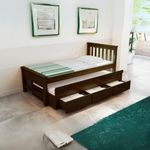 Bicama Esmeralda Cor Castanho + 2 Colchões Ortobom D28A Bicama com 3 Gavetas Esmeralda + 2 Colchões Ortobom D28 é a escolha ideal para quem busca praticidade e elegância.Feita em madeira maciça Pérola, oferece durabilidade e um design sofisticado que se adapta a qualquer decoração.Características PrincipaisMaterial: Madeira Maciça PérolaDimensões: 206cm (C) x 100cm (L) x 107cm (A)Peso Suportado: Até 150 kg por camaGavetas: 3 gavetas com corrediças telescópicasCores Disponíveis: Avelã, Castanho, Imbuia, MelColchões: Colchões Espuma Solteiro D28 Ortobom com tecnologia Anti acaros e Antifugico.Dimensões do Colchão: 188cm (C) x 96cm (L) x 14cm (A)Peso Suportado: Até 150 Kg por colchãoFuncionalidadesEstrutura Resistente: Garante estabilidade e longa vida útil.Armazenamento: 3 gavetas espaçosas para melhor organização.Design Elegante: Disponível em diversas cores para combinar comseu quarto.BenefíciosDurabilidade: Madeira de alta qualidade para um uso prolongado.Versatilidade: Oferece uma cama extra para visitas.Facilidade de Montagem: Sistema de montagem simples e prático.Especificações Técnicas Bicama:Altura: 94cmLargura: 100cmComprimento: 206cmAuxiliar: 94cmPeso Total: 81kgEspecificações Técnicas Colchões:Altura: 14cmLargura: 88cmComprimento: 188cmPeso Total: 10kgItens Inclusos1x Bicama com Gavetas2x Colchões Ortobom Espuma D28Manual de InstruçõesGarantia e SuporteGarantia: 3 meses contra defeitos de fabricaçãoSuporte: Atendimento ao cliente via telefone e e-mailSobre a MarcaA Mundo Kaza é reconhecida pela alta qualidade de seus produtos e pelo design inovador, sempre focada na satisfação e bem-estar dos seus clientes.Depoimentos de Clientes“Ajudou a manter tudo organizado com as gavetas e a cama extra é perfeita para visitas!” – Fernanda S.“Produto de qualidade impecável, superou minhas expectativas.” – Carlos M.Perguntas Frequentes (FAQ)P: A cama suporta qual peso?R: Até 150 kg por cama.P: Quantas gavetas possui?R: 3 gavetas com corrediças telescópicas.Informações AdicionaisFrete: Consulte o valor do frete inserindo seu CEP.Política de Devolução: Devoluções em até 7 dias após o recebimento do produto.Invista na qualidade e sofisticação da Bicama com 3 Gavetas Esmeralda + 2 Colchões Ortobom D28.Ela é a escolha perfeita para quem busca um produto durável, bonito e funcional para o quarto.Adquira a sua agora e eleve o conforto do seu lar!