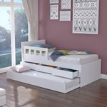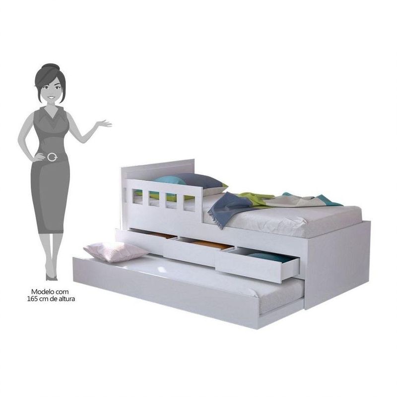 Bicama Infantil Com Grade 3 Gavetas Faces F04 Branco - Mpozenato Lar doce lar!No momento em que se fala em quarto, a imagem de uma cama é quase nítida aos nossos olhos não é mesmo? Ás vezes por conta do espaço e necessidade de haver mais de uma, nem sempre é possível colocá-las de forma que fique dinâmico com os demais componentes.Mas com a Bicama Faces, da Mpozenato, a tarefa de deixar esse ambiente funcional e agradável será fácil! O móvel produzido 100% em MDF conta com 3 Gavetas, rodízios na cama auxiliar e acabamento em UV fosco texturizado, garantindo mais durabilidade ao produto. Com essa estrutura cheia de comodidade fica bem mais prazeroso organizar o necessário sem abrir mão do conforto tão estimado no dia a dia! Vale ressaltar que, além de otimizar seu espaço, o design moderno agrega um charme sofisticado para o cômodo.O que achou? Não perca tempo, adquira já! Dimensões do ProdutoLargura: 194,3 Cm.Altura: 104 Cm.Profundidade:98 Cm.Peso: 125 Kg.Medida do colchão compatível:88 X 188 cm.Características do ProdutoMaterial da Estrutura:MDF.Peso Suportado: 100 Kg distribuídos em cada cama.Tonalidade:Branco.Acabamento:Pintura Ultravioleta Fosca Texturizada.Escala de Brilho: Fosco.Acompanha Colchão:Não.Possui Gavetas:Sim.Quantidade de Gavetas: 3 Gavetas.Possui Corrediças: Sim.Tipo de Corrediças: Telescópicas.Possui Rodízios: Sim.Diferenciais:- Design moderno.- Grade e gavetas podem ser instaladas em ambos os lados.- Gavetas de deslize suave.Sistema de Montagem: Minifix / Cavilhas / Parafusos.Manual de Montagem:Sim.Complexidade da Montagem:Média.Conteúdo da Embalagem: 1 Bicama.???????Volumes: 6 Volumes.Garantia do Fabricante: 90 Dias contra defeitos de fabricação.Montagem: Recomendamos que seja feita por um profissional.Recomendação de Limpeza: Utilize pano levemente úmido.Observações importantes- Produto para uso residencial em ambiente interno, não devendo ficar exposto diretamente ao sol, calor e umidades excessivas.- Pode haver alguma diferença de tonalidade entre a imagem e o produto real, por conta do tratamento de imagens e a calibração de cores do seu monitor.- As imagens são meramente ilustrativas, não acompanham objetos de decoração e eletrônicos.- Ao receber a mercadoria, o cliente deve verificar as condições da embalagem, caso haja alguma avaria não assine o comprovante de recebimento.- Montagem, desmontagem e outras instalações serão de responsabilidade do cliente. Não nos responsabilizamos, no ato da entrega, por subir escadas/elevadores ou pelo transporte por guincho em apartamentos. Eventuais despesas são de responsabilidade do comprador.- Confira as dimensões do produto e certifique-se de que passará normalmente por supostos elevadores, portas, escadas e/ou corredores de sua residência.Marca :MPOZENATO -Referência :76313Garantia :90 Dias após o recebimento do produto