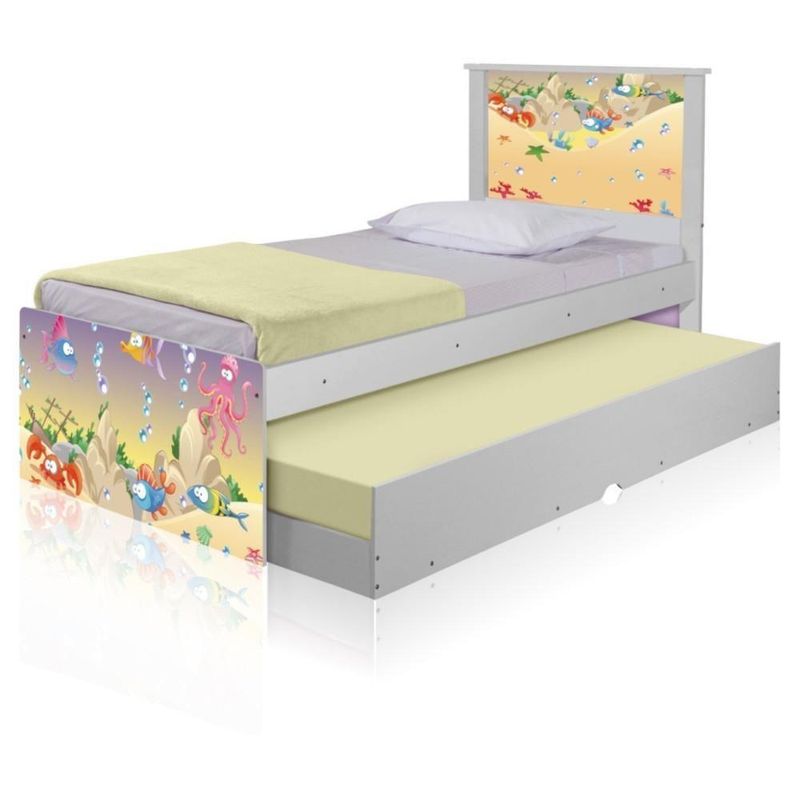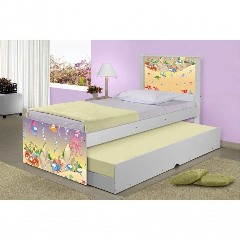 Bicama Juvenil Adesivada Fundo Do Mar Feliz Com ColchõesBicama Bibox Juvenil Barcelona Adesivada Fundo do Mar Feliz com 2 Colchões - BrancoRef. 1458A Bicama Bibox Juvenil Barcelona Adesivada Fundo do Mar Feliz é belíssima e conta com um design funcional, que ocupa pouco espaço no ambiente.A Coleção Fundo do Mar Feliz foi desenvolvida por nossos designers oferecendo um visual exclusivo, descontraído e divertido ao ambiente.A cama auxiliar fica embaixo da principal e basta puxá-la por meio das corrediças para começar a fazer uso dela.É ideal para quartos pequenos e para caso precise de uma cama extra para receber um amigo, ou divida o dormitório com alguém.Feita em MDF e MDP e seu acabamento é feito com pintura UV brilhante tornando-a um produto resistente e com aspecto de novo por muito mais tempo.ACOMPANHA COLCHÕES DE 12X88X188 |CAMA AUXILIAR PODE SER MONTADA DOS DOIS LADOS - Medidas da Cama:Altura: 107 cmLargura: 96 cmComprimento: 195 cm - Medidas da Cama Auxiliar:Altura: 26 cmLargura: 188 cmComprimento: 92 cm Informações do produto:- Cor do produto: Branco- Material: MDF/MDP- Colchão Incluso: 2 unidades (88cm x 188cm - solteiro)- Tipo de Colchão: Espuma D20- Garantia: 3 meses contra defeito de fabricação.- Peso máximo suportado: 95 kg por cama. Itens Inclusos:01 Cama Solteiro com Cama Auxiliar.02 Colchões solteiro D20 88cm x 188cm.Kit completo para montagem, manual detalhado de instruções. Informações complementares:- Fotos meramente ilustrativas do produto no ambiente.- Verificar descrição e tamanho do produto antes da compra.- Avaliar a mercadoria no ato do recebimento e recusar em caso de divergência ou avarias.- Mantenha as informações de contato e endereço de entrega atualizados para entrarmos em contato caso necessário.* Sugerimos a contratação de um montador profissional para a montagem do produto. Não nos responsabilizamos por avarias causadas no ato da montagem.* Não nos responsabilizamos pela montagem e desmontagem do produto no ato da entrega e devolução, assim como os custos gerados nestas situações.* A transportadora entregará o produto no andar térreo do endereço de entrega.* Não nos responsabilizamos por subir escadas, corredores e elevadores ou transporte por guincho em apartamentos. MARCA: Kids Mobili | GÊNERO: Unissex | ESTADO DE ORIGEM: SP | COMPRIMENTO PRODUTO COM EMBALAGEM (CM): 195 | COR PREDOMINANTE: Branco | POSSUI COLCHÃO: Sim | ALTURA DO PRODUTO COM EMBALAGEM (CM): 53 | LARGURA PRODUTO COM EMBALAGEM (CM): 88 | PESO DO PRODUTO (KG): 46,9 | TIPO DE CAMA: Padrão | LARGURA DO PRODUTO (CM): 96 | MATERIAL PARA FILTRO: Madeira | PESO SUPORTADO (KG): 95 | DESCRIÇÃO DO TAMANHO: 107x96x195cm | PESO PRODUTO COM EMBALAGEM (KG): 46,9 | MATERIAL PRINCIPAL: Madeira | CONTEÚDO DA EMBALAGEM: 01-Bicama + 02-Colchões | INSTRUÇÕES/CUIDADOS: Avaliar a mercadoria no ato do recebimento e recusar em caso de divergência ou avarias. Evitar de fazer a limpeza com produtos químicos e danosos ao produto | COMPRIMENTO DO PRODUTO (CM): 195 | ALTURA DO PRODUTO (CM): 107 | PRODUTO PRECISA DE MONTAGEM?: Sim | QUANTIDADES DE CAIXAS DE EMBALAGEM: 4 | INCLUI MANUAL DE MONTAGEM: Sim | CORES DO PRODUTO (FILTRO DE CORES): Branco | PRODUTO: 01-Bicama + 02-Colchões | CLASSIFICAÇÃO DA CAMA: Solteiro | MODELO DE CAMA: Bicama