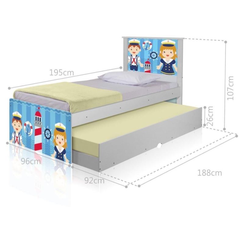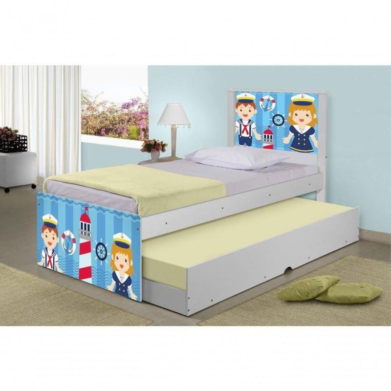 Bicama Juvenil Adesivada Marinheiros Com ColchõesBicama Bibox Juvenil Barcelona Adesivada Marinheiros com 2 Colchões - BrancoRef. 1436A Bicama Bibox Juvenil Barcelona Adesivada Marinheiros é belíssima e conta com um design funcional, que ocupa pouco espaço no ambiente.A Coleção Marinheiros foi desenvolvida por nossos designers oferecendo um visual exclusivo, descontraído e divertido ao ambiente.A cama auxiliar fica embaixo da principal e basta puxá-la por meio das corrediças para começar a fazer uso dela.É ideal para quartos pequenos e para caso precise de uma cama extra para receber um amigo, ou divida o dormitório com alguém.Feita em MDF e MDP e seu acabamento é feito com pintura UV brilhante tornando-a um produto resistente e com aspecto de novo por muito mais tempo.ACOMPANHA COLCHÕES DE 12X88X188|CAMA AUXILIAR PODE SER MONTADA DOS DOIS LADOS- Medidas da Cama:Altura: 107 cmLargura: 96 cmComprimento: 195 cm- Medidas da Cama Auxiliar:Altura: 26 cmLargura: 188 cmComprimento: 92 cmInformações do produto:- Cor do produto: Branco- Material: MDF/MDP- Colchão Incluso: 2 unidades (88cm x 188cm - solteiro)- Tipo de Colchão: Espuma D20- Garantia: 3 meses contra defeito de fabricação.- Peso máximo suportado: 95 kg por cama.Itens Inclusos:01 Cama Solteiro com Cama Auxiliar.02 Colchões solteiro D20 88cm x 188cm.Kit completo para montagem, manual detalhado de instruções.Informações complementares:- Fotos meramente ilustrativas do produto no ambiente.- Verificar descrição e tamanho do produto antes da compra.- Avaliar a mercadoria no ato do recebimento e recusar em caso de divergência ou avarias.- Mantenha as informações de contato e endereço de entrega atualizados para entrarmos em contato caso necessário.* Sugerimos a contratação de um montador profissional para a montagem do produto. Não nos responsabilizamos por avarias causadas no ato da montagem.* Não nos responsabilizamos pela montagem e desmontagem do produto no ato da entrega e devolução, assim como os custos gerados nestas situações.* A transportadora entregará o produto no andar térreo do endereço de entrega.* Não nos responsabilizamos por subir escadas, corredores e elevadores ou transporte por guincho em apartamentos.MARCA: Kids Mobili | TIPO DE CAMA: Padrão | PESO SUPORTADO (KG): 95 | MATERIAL PARA FILTRO: Madeira | ESTADO DE ORIGEM: SP | LARGURA PRODUTO COM EMBALAGEM (CM): 88 | PRODUTO: 01-Bicama + 02-Colchões | CLASSIFICAÇÃO DA CAMA: Solteiro | PRODUTO PRECISA DE MONTAGEM?: Sim | INCLUI MANUAL DE MONTAGEM: Sim | ALTURA DO PRODUTO COM EMBALAGEM (CM): 53 | QUANTIDADES DE CAIXAS DE EMBALAGEM: 4 | COMPRIMENTO DO PRODUTO (CM): 195 | COMPRIMENTO PRODUTO COM EMBALAGEM (CM): 195 | MODELO DE CAMA: Bicama | GÊNERO: Unissex | PESO DO PRODUTO (KG): 46,9 | CONTEÚDO DA EMBALAGEM: 01-Bicama + 02-Colchões | DESCRIÇÃO DO TAMANHO: 107x96x195cm | POSSUI COLCHÃO: Sim | LARGURA DO PRODUTO (CM): 96 | COR PREDOMINANTE: Branco | ALTURA DO PRODUTO (CM): 107 | MATERIAL PRINCIPAL: Madeira | PESO PRODUTO COM EMBALAGEM (KG): 46,9 | CORES DO PRODUTO (FILTRO DE CORES): Branco | INSTRUÇÕES/CUIDADOS: Avaliar a mercadoria no ato do recebimento e recusar em caso de divergência ou avarias. Evitar de fazer a limpeza com produtos químicos e danosos ao produto