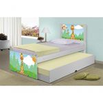 Bicama Safari GirafaBicama Juvenil Barcelona Adesivada Safari Girafa - BrancoRef. 1449A Bicama Juvenil Barcelona Adesivada Safari Girafa é belíssima e conta com um design funcional, que ocupa pouco espaço no ambiente.A Coleção Safari Girafa foi desenvolvida por nossos designers oferecendo um visual exclusivo, descontraído e divertido ao ambiente.A cama auxiliar fica embaixo da principal e basta puxá-la por meio das corrediças para começar a fazer dela.É ideal para quartos pequenos e para caso precise de uma cama extra para receber um amigo, ou divida o dormitório com alguém.Feita em MDF e MDP e seu acabamento é feito com pintura UV brilhante tornando-a um produto resistente e com aspecto de novo por muito mais tempo.É uma excelente escolha para acomodar colchões de solteiro na medida de 188 cm x 88 cm de largura.- Medidas da Cama:Altura: 107 cmLargura: 96 cmComprimento: 195 cm- Medidas da Cama Auxiliar:Altura: 26 cmLargura: 188 cmComprimento: 92 cmInformações do produto:- Cor do produto: Branco- Material: MDF/MDP- Ideal para colchões de: 88 cm x 188 cm - solteiro (colchão não incl)- Garantia: 3 meses contra defeito de fabricação.- Peso máximo suportado: 95 kg por cama.Itens Incls:01 Cama Solteiro com Cama Auxiliar.Kit completo para montagem, manual detalhado de instruções.Informações complementares:- Fotos meramente ilustrativas do produto no ambiente.- Verificar descrição e tamanho do produto antes da compra.- Avaliar a mercadoria no ato do recebimento e rec em caso de divergência ou s.- Mantenha as informações de contato e endereço de atualizados para entrarmos em contato caso necessário.* Sugerimos a contratação de um montador para a montagem do produto. Não nos responsabilizamos por s cadas no ato da montagem.* Não nos responsabilizamos pela montagem e desmontagem do produto no ato da e devolução, assim como os custos gerados nestas situações.* A transportadora rá o produto no andar térreo do endereço de .* Não nos responsabilizamos por subir escadas, corredores e elevadores ou transporte por guincho em apartamentos.