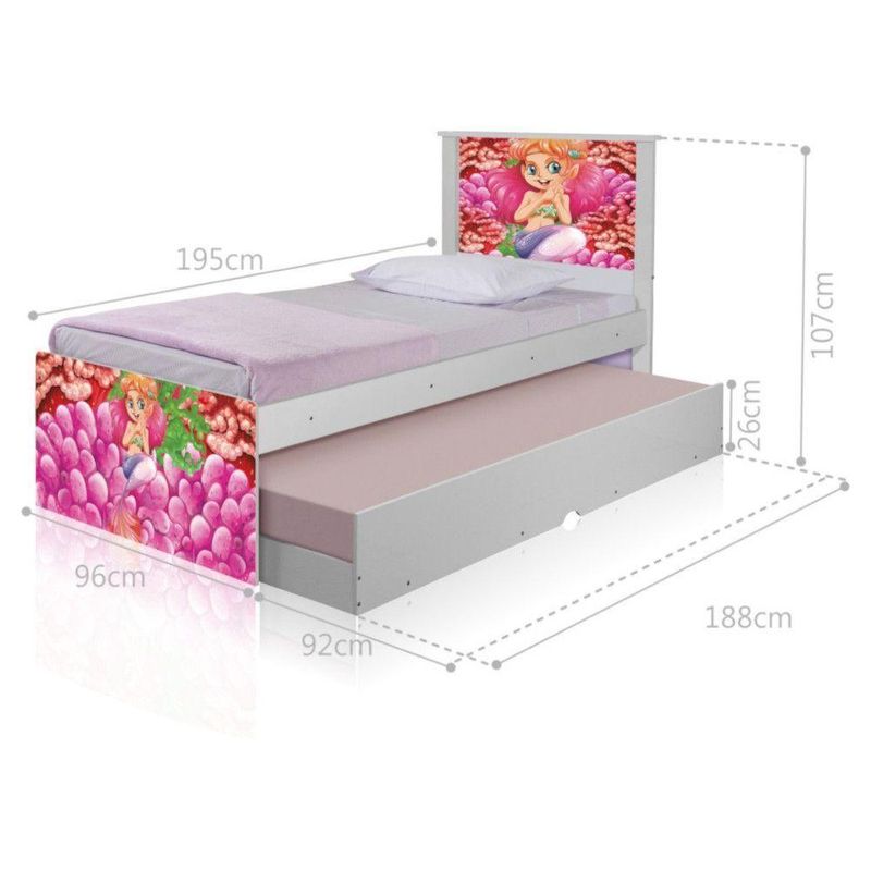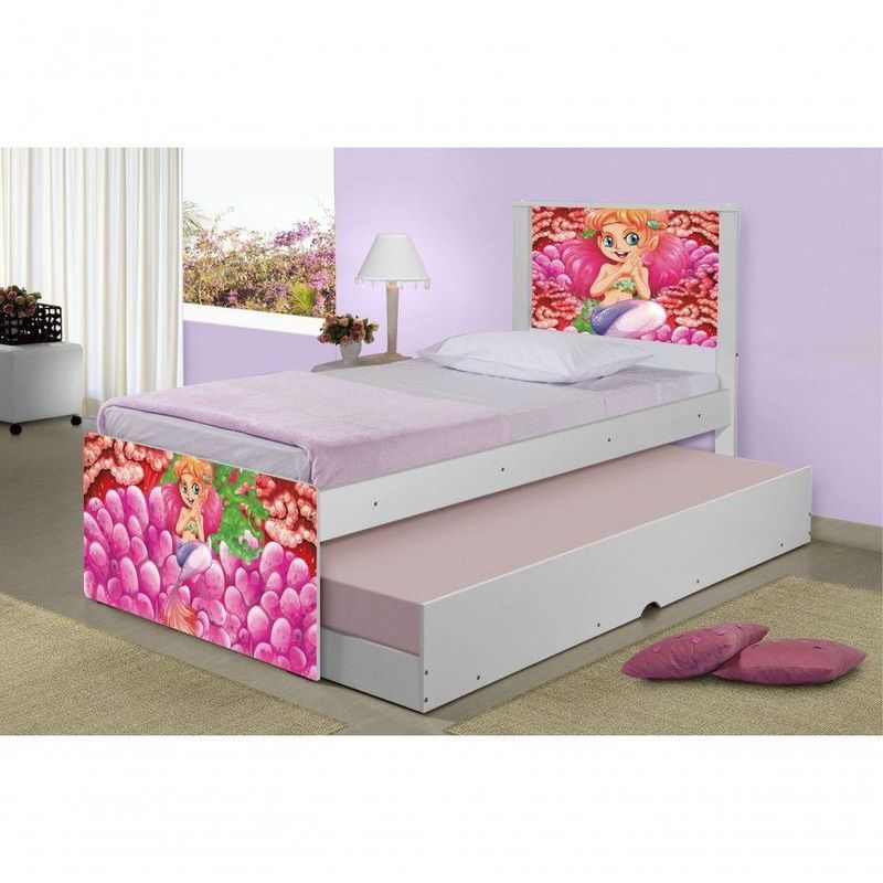 Bicama Sereia E Corais Com ColchõesBicama Juvenil Barcelona Adesivada Sereia e Corais com 2 Colchões - BrancoRef. 1418A Bicama Juvenil Barcelona Adesivada Sereia e Corais é belíssima e conta com um design funcional, que ocupa pouco espaço no ambiente.A Coleção Sereia e Corais foi desenvolvida por nossos designers oferecendo um visual exclusivo, descontraído e diido ao ambiente.A cama auxiliar fica embaixo da principal e basta puxá-la por meio das corrediças para começar a fazer uso dela.É ideal para quartos pequenos e para caso precise de uma cama extra para receber um amigo, ou divida o dormitório com alguém.Feita em MDF e MDP e seu acabamento é feito com pintura UV brilhante tornando-a um produto resistente e com aspecto de por muito mais tempo.É uma excelente escolha para acomodar colchões de solteiro na medida de 188 cm x 88 cm de largura.- Medidas da Cama:Altura: 107 cmLargura: 96 cmComprimento: 195 cm- Medidas da Cama Auxiliar:Altura: 26 cmLargura: 188 cmComprimento: 92 cmInformações do produto:- Cor do produto: Branco- Material: MDF/MDP- Colchão Incluso: 2 unidades (88cm x 188cm - solteiro)- Tipo de Colchão: Espuma D20- Garantia: 3 meses contra defeito de fabricação.- Peso máximo suportado: 95 kg por cama.Itens Inclusos:01 Cama Solteiro com Cama Auxiliar.02 Colchões solteiro D20 88cm x 188cm.Kit completo para montagem, manual detalhado de instruções.Informações complementares:- Fotos meramente ilustrativas do produto no ambiente.- Verificar descrição e tamanho do produto antes da compra.- Avaliar a mercadoria no ato do recebimento e recusar em caso de divergência ou .- Mantenha as informações de contato e endereço de atualizados para entrarmos em contato caso necessário.* Sugerimos a contratação de um montador para a montagem do produto. Não nos responsabilizamos por causadas no ato da montagem.* Não nos responsabilizamos pela montagem e desmontagem do produto no ato da e , assim como os custos gerados nestas situações.* A transportadora rá o produto no andar térreo do endereço de .* Não nos responsabilizamos por subir escadas, corredores e elevadores ou transporte por guincho em apartamentos.