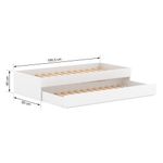 Bicama Solteiro Mdf Bp Branco MegamobiliaDETALHES DO PRODUTOMaterial: MDF Melamina de Alta QualidadePintura/Acabamento: Branco LisoMedida do Colchão da Cama (cm x cm): 188x88 (Não incluso)Medida do Colchão da Cama Auxiliar (cm x cm): 188x88 *14 (Altura Máxima Recomendada) (Não incluso)Peso Suportado Cama :120 KgPeso Suportado Cama Auxiliar :120 KgDiferenciais: Auxiliar com 4 rodízios, MDF Melamina 15mm, Estrados em Madeira Maciça.DIMENSÕES CAMALargura (cm):195,5Altura (cm):40Profundidade (cm):93INFORMAÇÕES COMPLEMENTARESNecessita de Montagem:SIM (Acompanha Manual de montagem)Atenção:Não realizamos serviço de montagem e instalação. Imagens meramente ilustrativas. Cores e tonalidades podem variar.Garantia do Fabricante:Prazo de 3 meses por defeito de fabricaçãoEMBALAGEMPeso (Kg):55,6Quantidade de Volumes:02 Material Principal: MDF | Cor Predominante: Branco | Necessita Montagem: Sim | Acompanha Colchão: Não | Tipo de Cama: Bicama | Altura: 40 | Largura: 93 | Comprimento: 195,5 | Peso: 55,6 | Peso máximo suportado: 120 | Cor Via: Branco | Peso com Embalagem: 56 | Comprimento com Embalagem: 199 | Largura com Embalagem: 40 | Altura com Embalagem: 30 | Tamanho da Cama: 40 x 93 x 195,5 | Descrição do Tamanho: Solteiro