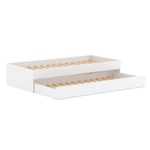 Bicama Solteiro Mdf Branco Sem Cabeceira Mobilistore DETALHES DO PRODUTOMaterial: MDF Melamina de Alta QualidadePintura/Acabamento: Branco LisoMedida do Colchão da Cama (cm x cm): 188x88 (Não incluso)Medida do Colchão da Cama Auxiliar (cm x cm): 188x88 *14 (Altura Máxima Recomendada) (Não incluso)Peso Suportado Cama :120 KgPeso Suportado Cama Auxiliar :120 KgDiferenciais: Auxiliar com 4 rodízios, MDF Melamina 15mm, Estrados em Madeira Maciça.DIMENSÕES CAMALargura (cm):195,5Altura (cm):40Profundidade (cm):93INFORMAÇÕES COMPLEMENTARESNecessita de Montagem:SIM (Acompanha Manual de montagem)Atenção:Não realizamos serviço de montagem e instalação. Imagens meramente ilustrativas. Cores e tonalidades podem variar.Garantia do Fabricante:Prazo de 3 meses por defeito de fabricaçãoEMBALAGEMPeso (Kg):55,6Quantidade de Volumes:02 Material Principal: MDF | Cor Predominante: Branco | Necessita Montagem: Sim | Acompanha Colchão: Não | Tipo de Cama: Bicama | Cor: Branco