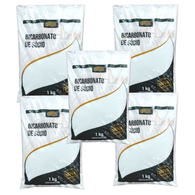 5 Pacotes de 1 Kg (total: 5 kg)Marca: Sabor VerdeCom a comprovada qualidade da Sabor Verde, pode ser usado na culinária, além do seu habitual uso nas limpezas em geral.DICAS DE CONSUMO: o bicarbonato de sódio tem várias aplicações, seja na culinária como fermento para bolos, pães e preparações em geral, seja como auxiliar de limpeza para roupas, utensílios e higiene pessoal. Outras pessoas utilizam bicarbonato de sódio para neutralizar a acidez estomacal (azia).O bicarbonato de sódio (NaHCO3) é um sal formado pelo cátion Na1+ (sódio) e pelo ânion poliatômico (HCO3)2- (hidrogenocarbonato).Na natureza é encontrado principalmente no mineral descrito pela primeira vez no Monte Vesúvio, Itália, em 1928. Resumidamente trata-se de um pó branco, solúvel em água e com sabor alcalino.