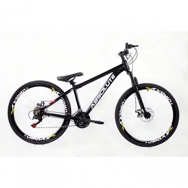 Bicicleta Aro 26 Absolute Nero 5 Preto 21v Câmbios VmaxxObservações Importantes: Pode haver variações de tonalidade entre a imagem e o produto real. A garantia não cobre por mau uso ou montagem inadequada. Itens de desgaste natural não estão cobertos pela garantia.Prepare-se para aventuras emocionantes com a Bicicleta Absolute Nero 5! Adquira a sua agora e descubra a liberdade sobre duas rodas. Montagem e Garantia:A bicicleta é enviada pré-montada e revisada, sendo necessário apenas a montagem de alguns componentes. Recomendamos que a montagem final e regulagem de câmbio sejam feitas por uma oficina especializada para garantir a e funcionalidade do produto. Características Principais: Marca: Absolute Nero 5 Quadro: Alumínio leve e resistente Idade Recomendada: Juvenil/Adulto Gênero: Unissex Aro: 26 Velocidades: 21 Garfo: Suspensão mecânica dianteira para maior conforto Guidão: Voador Suporte de Guidão: 35mm Freios: Disco Mecanico para em qualquer terreno Rodas: Vmaxx Manoplas: Preto para melhor aderência Pneus: Mtb , ideais para diversas superfícies Pedal: Nylon MTB, leve e resistente Pedivela: Nylon triplo Roda Livre: 7 marchas