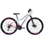 Bicicleta Aro 29 Absolute Hera Feminina Alumínio 21v Freio A Disco Garfo Suspensão Branco/Rosa 15Linda bike aro 29 em alumínio, nova na caixa a pronta entrega, produto com ótima qualidade e acabamento, possui 21 marchas com sistema de alavancas rapid fire que a cada clique uma marcha é trocada, garfo com suspensão, sistema de freio a disco mecânico. Segue abaixo características da bike:Quadro Absolute Hera AlumínioGarfo 29 suspensão curso 60mmSuporte do guidão em alumínio PretoGuidão 31.8mm PretoCanote do selim 27.2Selim Sport PretoAbraçadeira do Selim alumínio PretoAros Aero Parede dupla reforçadoRaios PretosCubos Pretos com blocagensPneus 29 CravudinhosMovimento central selado rolamentadoFreios a disco Mecânicos com discos inox 160mmAlavancas Semi-automáticas Rapid FireCâmbio Traseiro Index ImportadoCâmbio Dianteiro ImportadoCorrente IndexPedivela Aço RevestidoPedal Plataforma Nylon PretoRoda Livre 7v index (rosca)Bicicleta pré montada, vai precisar apenas fixar a roda dianteira, guidão, selim e pedais. Recomendamos que seja feita uma revisão por um técnico após a recebimento do produto, para reajuste e regulagem, pois no transporte pode acontecer de alguma peça soltar ou desregularFotos meramente ilustrativas