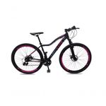 Bicicleta Aro 29 Absolute Hera Feminina Alumínio 24v Freio A Disco Garfo Suspensão Preto 17Linda bike aro 29 em alumínio, nova na caixa a pronta entrega, produto com ótima qualidade e acabamento, possui 24 marchas com sistema de alavancas rapid fire que a cada clique uma marcha é trocada, garfo com suspensão, sistema de freio a disco mecânico. Segue abaixo características da bike:Quadro Absolute Hera AlumínioGarfo 29 suspensão curso 60mmSuporte do guidão em alumínio PretoGuidão 31.8mm PretoCanote do selim 27.2Selim Sport PretoAbraçadeira do Selim alumínio PretoAros Aero Parede dupla reforçadoRaios PretosCubos Pretos com blocagensPneus 29 CravudinhosMovimento central selado rolamentadoFreios a disco Mecânicos com discos inox 160mmAlavancas Semi-automáticas Rapid FireCâmbio Traseiro Index ImportadoCâmbio Dianteiro ImportadoCorrente IndexPedivela Aço RevestidoPedal Plataforma Nylon PretoRoda Livre 8v index (rosca)Bicicleta pré montada, vai precisar apenas fixar a roda dianteira, guidão, selim e pedais. Recomendamos que seja feita uma revisão por um técnico após a recebimento do produto, para reajuste e regulagem, pois no transporte pode acontecer de alguma peça soltar ou desregularFotos meramente ilustrativas