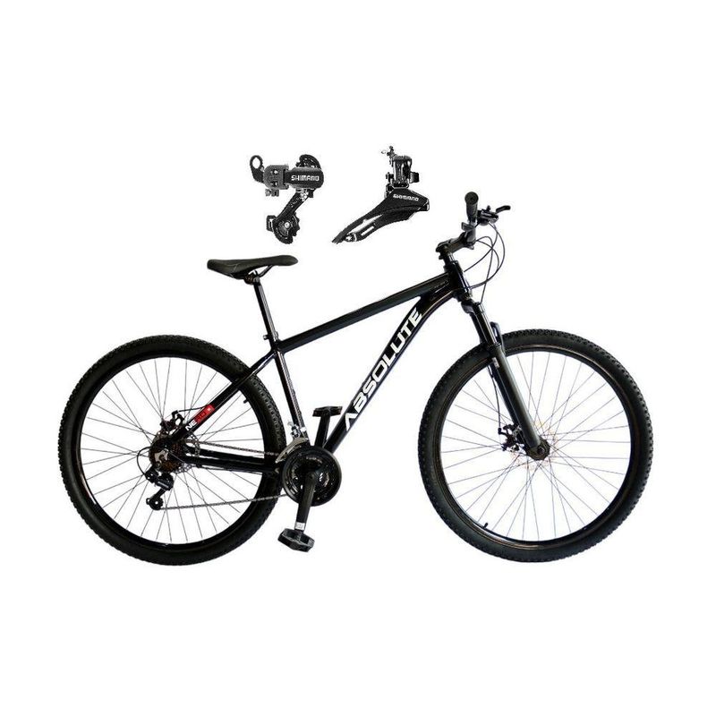 Bicicleta Aro 29 Absolute Nero 5 Alumínio 21v Câmbios Shimano Mountain Bike Freio A Disco Preto 21Linda bike aro 29 em alumínio, nova na caixa a pronta entrega, produto com ótima qualidade e acabamento, possui 21 marchas com sistema de alavancas rapid fire que a cada clique uma marcha é trocada, garfo com suspensão, sistema de freio a disco mecânico e Câmbios Shimano. Segue abaixo características da bike:Quadro Absolute Nero 5 AlumínioGarfo 29 suspensão curso 60mmSuporte do guidão em alumínio PretoGuidão 31.8mm PretoCanote do selim 27.2Selim Sport PretoAbraçadeira do Selim alumínio PretoAros Aero Parede dupla reforçadoRaios PretosCubos Pretos com blocagensPneus 29 CravudinhosMovimento central selado rolamentadoFreios a disco Mecânicos com discos inox 160mmAlavancas Semi-automáticas Rapid FireCâmbio Traseiro Shimano TZCâmbio Dianteiro Shimano TZCorrente IndexPedivela Aço RevestidoPedal Plataforma Nylon PretoRoda Livre 7v index (rosca)Bicicleta pré montada, vai precisar apenas fixar a roda dianteira, guidão, selim e pedais. Recomendamos que seja feita uma revisão por um técnico após a recebimento do produto, para reajuste e regulagem, pois no transporte pode acontecer de alguma peça soltar ou desregularFotos meramente ilustrativas