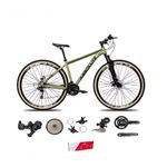 Bicicleta Aro 29 Absolute Nero 5 Alumínio 2x9 Freios Hidráulicos K7 Garfo Com Trava 18v Oliva 21Bike aro 29, com quadro Absolute Nero 5 (com cabeamento interno) nova na caixa a pronta entrega, produto com ótima qualidade e acabamento, possui 18 marchas com sistema de coroa dupla e 9 catracas (conhecido como 2x9), alavancas rapid fire que a cada clique uma marcha é trocada, câmbio dianteiro e traseiro absolute, Catraca do tipo k7 de encaixe, garfo com suspensão e sistema de trava para melhor performance, sistema de freio a disco hidráulico, pneus com cravo baixo para uso em terra e asfalto. Segue abaixo características da bike: Quadro 29 Absolute Nero 5 em Alumínio com cabeamento interno / Garfo 29 100mm suspensão com Trava no Ombro / Suporte do guidão em alumínio Preto (gta, absolute, ksw-dependerá da disponibilidade no estoque) / Guidão 31.8mm em alumínio Preto(gta, absolute, gti, zoom-dependerá da disponibilidade no estoque) / Canote do selim 27.2 em alumínio Preto Com carrinho(gta, absolute, gti, zoom-dependerá da disponibilidade no estoque) / Selim Sport Preto / Abraçadeira do Selim alumínio Preto / Aros Aero Parede dupla reforçado / Raios Pretos / Cubos Pretos Alumínio para K7 com blocagens / Pneus 29 Com Cravo / Movimento central selado rolamentado / Freios a disco Hidráulicos com discos inox 160mm(Gta ou Absolute-dependerá da disponibilidade no estoque) / Alavancas Semi-automáticas / Rapid Fire Absolute A5 2x9 / Câmbio Traseiro Absolute A5 / Câmbio Dianteiro Absolute A5 / Corrente Index paco/dto / Pedivela Alumínio Duplo Absolute 24/38D 175mm / Pedal Plataforma Nylon Preto / Cassete Absolute 9v (11, 13, 15, 18, 21, 24, 28, 34, 40D) / Peso de Referência 14,8kg peças descritas acima que serão enviadas de acordo com disponibilidade não tendo A opção de escolher cada uma.Bicicleta pré montada, vai precisar apenas fixar a roda dianteira, guidão, selim e pedais. Recomendamos que seja feita uma revisão por um técnico após a recebimento do produto, para reajuste e regulagem, pois no transporte pode acontecer de alguma peça soltar ou desregularFotos meramente ilustrativas