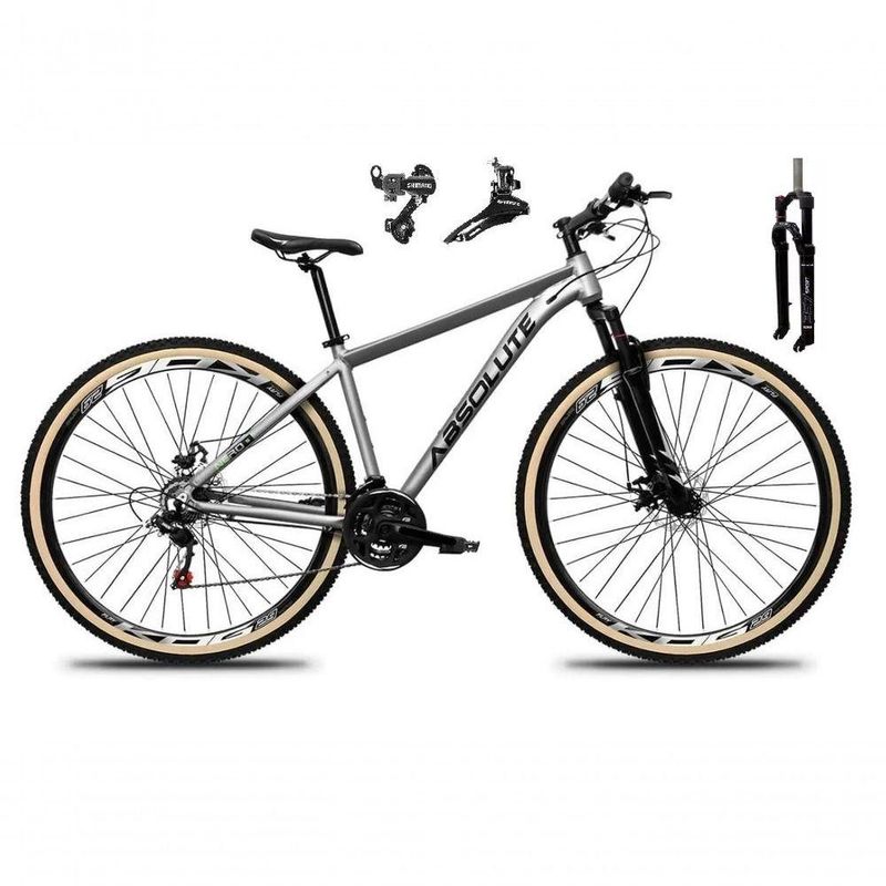 Bicicleta Aro 29 Absolute Nero 5 Alumínio Câmbios Shimano 24v Garfo Com Trava Mountain Bike Cinza 15Bike aro 29 em alumínio, nova na caixa a pronta entrega, produto com ótima qualidade e acabamento, possui 24 marchas com sistema de alavancas rapid fire que a cada clique uma marcha é trocada, garfo suspensão com trava no ombro, sistema de freio a disco mecânico, câmbio dianteiro e traseiro Shimano Tz. Segue abaixo características da bike: Quadro 29 Absolute Nero 5 em alumínio 6061 - cabeamento interno / Garfo 29 suspensão com Trava no Ombro e regulagem / Suporte do guidão em alumínio Preto / Guidão 31.8mm em alumínio Preto / Canote do selim 27.2 s/carrinho / Selim Sport Preto / Abraçadeira do Selim alumínio Preto / Aros Aero Parede dupla reforçado Raios Pretos / Cubos Pretos Aço / Pneus 29 cravudos / Movimento central selado rolamentado / Freios a disco Mecânicos com discos inox 160mm / Alavancas Semi-automáticas Rapid Fire / Câmbio Traseiro Index Shimano Tz / Câmbio Dianteiro Index Shimano Tz / Corrente Index 24v / Pedivela Aço Revestido / Pedal Plataforma Nylon Preto / Roda Livre 8v index dourada(rosca).Bicicleta pré montada, vai precisar apenas fixar a roda dianteira, guidão, selim e pedais. Recomendamos que seja feita uma revisão por um técnico após a recebimento do produto, para reajuste e regulagem, pois no transporte pode acontecer de alguma peça soltar ou desregularFotos meramente ilustrativas