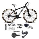 Bicicleta Aro 29 Absolute Nero 5 Câmbios Shimano Deore/altus 27v Freio Hidráulico Garfo Com trava Preto 15Bike aro 29, com quadro Absolute Nero 5, Pneu com Faixa, nova na caixa a pronta entrega, produto com ótima qualidade e acabamento, possui 27 marchas com sistema de alavancas rapid fire que a cada clique uma marcha é trocada, câmbio dianteiro shimano altus e traseiro shimano Deore, garfo com suspensão e sistema de trava para melhor performance, sistema de freio a disco hidráulico, pneus com cravo baixo para uso em terra e asfalto. Segue abaixo características da bike: Quadro 29 Absolute Nero 5 em Alumínio / Garfo 29 suspensão com Trava no Ombro e regulagem / Suporte do guidão em alumínio Preto / Guidão 31.8mm em alumínio Preto / Canote do selim 27.2 em alumínio Preto Com carrinho / Selim Sport Preto / Abraçadeira do Selim alumínio Preto / Aros Aero Parede dupla reforçado / Raios Pretos / Cubos em Alumínio Pretos com blocagens / Pneus 29 com cravo / Movimento central selado rolamentado / Freios a disco Hidráulicos com discos inox 160mm / Alavancas Semi-automáticas Rapid Fire gta/sunrun / Câmbio Traseiro shimano Deore 27V / Câmbio Dianteiro shimano altus 9v / Corrente Index dto/paco / Pedivela shimano Mt101 ou M371 27v(DEPENDERÁ da disponibilidade no estoque) / Pedal Plataforma Nylon Preto / Cassete k7 gta Sunrun 11/32 cromada.Bicicleta pré montada, vai precisar apenas fixar a roda dianteira, guidão, selim e pedais. Recomendamos que seja feita uma revisão por um técnico após a recebimento do produto, para reajuste e regulagem, pois no transporte pode acontecer de alguma peça soltar ou desregularFotos meramente ilustrativas
