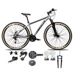 Bicicleta Aro 29 Absolute Nero 5 Kit 2x9 Gta Sunrun K7 Freio A Disco Garfo Com Trava Cinza 15Bike aro 29, com quadro Absolute Nero 5, nova na caixa a pronta entrega, produto com ótima qualidade e acabamento, possui 18 marchas com sistema de coroa dupla e 9 catracas (conhecido como 2x9), alavancas rapid fire que a cada clique uma marcha é trocada, câmbio dianteiro e traseiro Sunrun , Catraca do tipo k7 de encaixe, garfo com suspensão e sistema de trava para melhor performance, sistema de freio a disco mecânico, pneus com cravo baixo para uso em terra e asfalto. Segue abaixo características da bike:Quadro 29 Absolute Nero 5 em AlumínioGarfo 29 100mm suspensão com Trava no OmbroSuporte do guidão em alumínio PretoGuidão 31.8mm em alumínio PretoCanote do selim 27.2 em alumínio Preto Com carrinhoSelim Sport PretoAbraçadeira do Selim alumínio PretoAros Aero Parede dupla reforçadoRaios PretosCubos Pretos Alumínio para K7 com blocagensPneus 29 Com CravoMovimento central selado rolamentadoFreios a disco Mecânicos com discos 160mmAlavancas Semi-automáticas Rapid Fire Gta Sunrun 2x9Câmbio Traseiro Sunrun Cage Longo 43dCâmbio Dianteiro Sunrun 2v DuploCorrente Index PACO/DTO 9vPedivela Alumínio Duplo Gta 24/38D 175mmPedal Plataforma Nylon PretoCassete Sunrun 9v 11/36dPeso de Referência 15,5kgBicicleta pré montada, vai precisar apenas fixar a roda dianteira, guidão, selim e pedais. Recomendamos que seja feita uma revisão por um técnico após a recebimento do produto, para reajuste e regulagem, pois no transporte pode acontecer de alguma peça soltar ou desregularFotos meramente ilustrativas