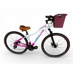 Bicicleta Aro 29 Feminina Absolute Hera Retrô Vintage 21v Confortável Cesta Selim 2 Molas - Branco/rosa Tam 15Uma bicicleta que desperta nostalgia à primeira vista, mas surpreende nos detalhes. ;Inspirada no estilo retrô/vintage, este modelo une o charme clássico com o que há de melhor na modernidade, ;entregando uma experiência de pedal extremamente confortável e prazerosa. ;Seu grande destaque é o conforto: selim largo com duas molas super macias, ;ideal para passeios longos, manoplas tipo couro agradáveis ao toque e uma cesta grande e prática, ;perfeita para o dia a dia. É a escolha ideal para quem busca estilo, ;conforto e funcionalidade em uma única bicicleta. ; ; ;Quadro Absolute Hera Alumínio ; ; ;Garfo 29 suspensão curso 60mm ; ; ;Suporte do guidão em alumínio preto ; ; ;Guidão alto confort preto ; ; ;Canote do selim 27.2mm ; ; ;Selim Super confort 2 molas marrom/bege ; ; ;Manoplas couro confort plus ; ; ;Abraçadeira do Selim alumínio Preto ; ; ;Aros Aero Parede dupla reforçado ; ; ;Raios Pretos ; ; ;Cubos Pretos com blocagens ; ; ;Pneus 29 Cravudinhos com faixa ; ; ;Movimento central selado rolamentado ; ; ;Freios a disco Mecânicos com discos inox 160mm ; ; ;Alavancas Semi-automáticas Rapid Fire ; ; ;Câmbio Traseiro Index Importado ; ; ;Câmbio Dianteiro Importado ; ; ;Corrente Index ; ; ;Pedivela Aço Revestido ; ; ;Pedal Plataforma Nylon preto ; ; ;Roda Livre 7v index (rosca) ; ; ;Kit Pisca LED dianteiro/traseiro ; ; ;Bicicleta pré montada, vai precisar apenas fixar a roda dianteira, guidão, selim e pedais. Recomendamos que seja feita uma revisão por um técnico após a recebimento do produto, para reajuste e regulagem, pois no transporte pode acontecer de alguma peça soltar ou desregular ;Fotos meramente ilustrativas