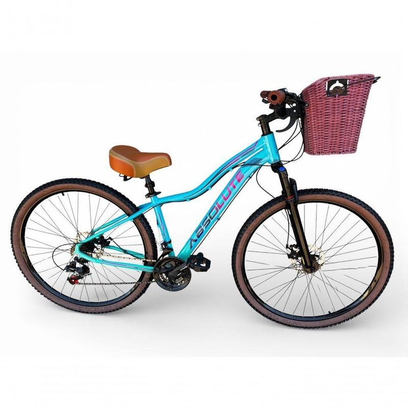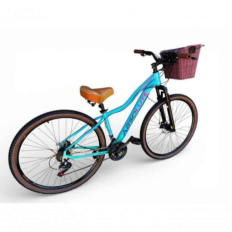 Bicicleta Aro 29 Feminina Absolute Hera Retrô Vintage 21v Confortável Cesta Selim 2 Molas Azul/verde Tamano 17Uma bicicleta que desperta nostalgia à primeira vista, mas surpreende nos detalhes.Inspirada no estilo retrô/vintage, este modelo une o charme clássico com o que há de melhor na modernidade,entregando uma experiência de pedal extremamente confortável e prazerosa.Seu grande destaque é o conforto: selim largo com duas molas super macias,ideal para passeios longos, manoplas tipo couro agradáveis ao toque e uma cesta grande e prática,perfeita para o dia a dia. É a escolha ideal para quem busca estilo,conforto e funcionalidade em uma única bicicleta.Quadro Absolute Hera AlumínioGarfo 29 suspensão curso 60mmSuporte do guidão em alumínio pretoGuidão alto confort pretoCanote do selim 27.2mmSelim Super confort 2 molas marrom/begeManoplas couro confort plusAbraçadeira do Selim alumínio PretoAros Aero Parede dupla reforçadoRaios PretosCubos Pretos com blocagensPneus 29 Cravudinhos com faixaMovimento central selado rolamentadoFreios a disco Mecânicos com discos inox 160mmAlavancas Semi-automáticas Rapid FireCâmbio Traseiro Index ImportadoCâmbio Dianteiro ImportadoCorrente IndexPedivela Aço RevestidoPedal Plataforma Nylon pretoRoda Livre 7v index (rosca)Kit Pisca LED dianteiro/traseiroBicicleta pré montada, vai precisar apenas fixar a roda dianteira, guidão, selim e pedais. Recomendamos que seja feita uma revisão por um técnico após a recebimento do produto, para reajuste e regulagem, pois no transporte pode acontecer de alguma peça soltar ou desregularFotos meramente ilustrativas