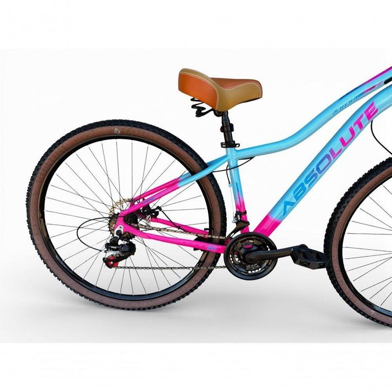 Bicicleta Aro 29 Feminina Absolute Hera Retrô Vintage 21v Hidráulica Selim Confortável Cesta Azul/rosa Tamano 15Uma bicicleta que desperta nostalgia à primeira vista, mas surpreende nos detalhes.Inspirada no estilo retrô/vintage, este modelo une o charme clássico com o que há de melhor na modernidade,entregando uma experiência de pedal extremamente confortável e prazerosa.Seu grande destaque é o conforto: selim largo com duas molas super macias,ideal para passeios longos, manoplas tipo couro agradáveis ao toque e uma cesta grande e prática,perfeita para o dia a dia. É a escolha ideal para quem busca estilo,conforto e funcionalidade em uma única bicicleta.Nova na caixa a pronta entrega, produto com ótima qualidade e acabamento, possui 21 marchas com sistema de alavancas rapid fire que a cada clique uma marcha é trocada, garfo com suspensão, sistema de freio a disco hidráulico . Segue abaixo características da bike:Quadro Absolute Hera AlumínioGarfo 29 suspensão curso 60mmSuporte do guidão em alumínio pretoGuidão alto confort plus pretoCanote do selim 27.2mmSelim Super confort plus 2 molasManoplas couro confort plusAbraçadeira do Selim alumínio PretoAros Aero Parede dupla reforçadoRaios PretosCubos Pretos com blocagensPneus 29 Cravudinhos com faixaMovimento central selado rolamentadoFreios a disco Hidráulico com discos inox 160mmAlavancas Semi-automáticas Rapid FireCâmbio Traseiro Index ImportadoCâmbio Dianteiro ImportadoCorrente IndexPedivela Aço RevestidoPedal Plataforma Nylon pretoRoda Livre 7v index (rosca)Kit Pisca LED dianteiro/traseiroBicicleta pré montada, vai precisar apenas fixar a roda dianteira, guidão, selim e pedais. Recomendamos que seja feita uma revisão por um técnico após a recebimento do produto, para reajuste e regulagem, pois no transporte pode acontecer de alguma peça soltar ou desregularFotos meramente ilustrativas