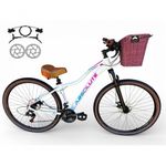 Bicicleta Aro 29 Feminina Absolute Hera Retrô Vintage 21v Hidráulica Selim Confortável Cesta Branco Tamano 15Uma bicicleta que desperta nostalgia à primeira vista, mas surpreende nos detalhes.Inspirada no estilo retrô/vintage, este modelo une o charme clássico com o que há de melhor na modernidade,entregando uma experiência de pedal extremamente confortável e prazerosa.Seu grande destaque é o conforto: selim largo com duas molas super macias,ideal para passeios longos, manoplas tipo couro agradáveis ao toque e uma cesta grande e prática,perfeita para o dia a dia. É a escolha ideal para quem busca estilo,conforto e funcionalidade em uma única bicicleta.Nova na caixa a pronta entrega, produto com ótima qualidade e acabamento, possui 21 marchas com sistema de alavancas rapid fire que a cada clique uma marcha é trocada, garfo com suspensão, sistema de freio a disco hidráulico . Segue abaixo características da bike:Quadro Absolute Hera AlumínioGarfo 29 suspensão curso 60mmSuporte do guidão em alumínio pretoGuidão alto confort plus pretoCanote do selim 27.2mmSelim Super confort plus 2 molasManoplas couro confort plusAbraçadeira do Selim alumínio PretoAros Aero Parede dupla reforçadoRaios PretosCubos Pretos com blocagensPneus 29 Cravudinhos com faixaMovimento central selado rolamentadoFreios a disco Hidráulico com discos inox 160mmAlavancas Semi-automáticas Rapid FireCâmbio Traseiro Index ImportadoCâmbio Dianteiro ImportadoCorrente IndexPedivela Aço RevestidoPedal Plataforma Nylon pretoRoda Livre 7v index (rosca)Kit Pisca LED dianteiro/traseiroBicicleta pré montada, vai precisar apenas fixar a roda dianteira, guidão, selim e pedais. Recomendamos que seja feita uma revisão por um técnico após a recebimento do produto, para reajuste e regulagem, pois no transporte pode acontecer de alguma peça soltar ou desregularFotos meramente ilustrativas