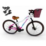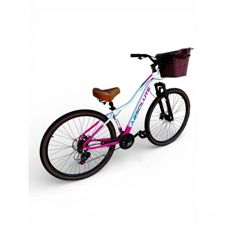 Bicicleta Aro 29 Feminina Absolute Hera Retrô Vintage 21v Shimano Selim Confortável Cesta Branco/rosa Tamano 17Uma bicicleta que desperta nostalgia à primeira vista, mas surpreende nos detalhes.Inspirada no estilo retrô/vintage, este modelo une o charme clássico com o que há de melhor na modernidade,entregando uma experiência de pedal extremamente confortável e prazerosa.Seu grande destaque é o conforto: selim largo com duas molas super macias,ideal para passeios longos, manoplas tipo couro agradáveis ao toque e uma cesta grande e prática,perfeita para o dia a dia. É a escolha ideal para quem busca estilo,conforto e funcionalidade em uma única bicicleta.Nova na caixa a pronta entrega, produto com ótima qualidade e acabamento, possui 21 marchas com sistema de alavancas rapid fire que a cada clique uma marcha é trocada, garfo com suspensão, sistema de freio a disco mecanico e cambios Shimano . Segue abaixo características da bike:Quadro Absolute Hera AlumínioGarfo 29 suspensão curso 60mmSuporte do guidão em alumínio pretoGuidão alto confort plus pretoCanote do selim 27.2mmSelim Super confort plus 2 molasManoplas couro confort plusAbraçadeira do Selim alumínio PretoAros Aero Parede dupla reforçadoRaios PretosCubos Pretos com blocagensPneus 29 Cravudinhos com faixaMovimento central selado rolamentadoFreios a disco mecanico com discos inox 160mmAlavancas Semi-automáticas Rapid FireCâmbio Traseiro Shimano TZCâmbio Dianteiro Shimano TZCorrente IndexPedivela Aço RevestidoPedal Plataforma Nylon pretoRoda Livre 7v index (rosca)Kit Pisca LED dianteiro/traseiroBicicleta pré montada, vai precisar apenas fixar a roda dianteira, guidão, selim e pedais. Recomendamos que seja feita uma revisão por um técnico após a recebimento do produto, para reajuste e regulagem, pois no transporte pode acontecer de alguma peça soltar ou desregularFotos meramente ilustrativas