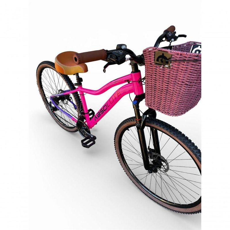 Bicicleta Aro 29 Feminina Absolute Hera Retrô Vintage Shimano 21v Hidráulica Confortável Cesta Rosa/lilas Tamano 17Uma bicicleta que desperta nostalgia à primeira vista, mas surpreende nos detalhes.Inspirada no estilo retrô/vintage, este modelo une o charme clássico com o que há de melhor na modernidade,entregando uma experiência de pedal extremamente confortável e prazerosa.Seu grande destaque é o conforto: selim largo com duas molas super macias,ideal para passeios longos, manoplas tipo couro agradáveis ao toque e uma cesta grande e prática,perfeita para o dia a dia. É a escolha ideal para quem busca estilo,conforto e funcionalidade em uma única bicicleta.Nova na caixa a pronta entrega, produto com ótima qualidade e acabamento, possui 21 marchas com sistema de alavancas rapid fire que a cada clique uma marcha é trocada, garfo com suspensão, sistema de freio a disco Hidraulico e cambios Shimano . Segue abaixo características da bike:Quadro Absolute Hera AlumínioGarfo 29 suspensão curso 60mmSuporte do guidão em alumínio pretoGuidão alto confort plus pretoCanote do selim 27.2mmSelim Super confort plus 2 molasManoplas couro confort plusAbraçadeira do Selim alumínio PretoAros Aero Parede dupla reforçadoRaios PretosCubos Pretos com blocagensPneus 29 Cravudinhos com faixaMovimento central selado rolamentadoFreios a disco Hidraulico com discos inox 160mmAlavancas Semi-automáticas Rapid FireCâmbio Traseiro Shimano TZCâmbio Dianteiro Shimano TZCorrente IndexPedivela Aço RevestidoPedal Plataforma Nylon pretoRoda Livre 7v index (rosca)Kit Pisca LED dianteiro/traseiroBicicleta pré montada, vai precisar apenas fixar a roda dianteira, guidão, selim e pedais. Recomendamos que seja feita uma revisão por um técnico após a recebimento do produto, para reajuste e regulagem, pois no transporte pode acontecer de alguma peça soltar ou desregularFotos meramente ilustrativas