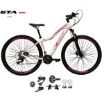 Bicicleta Aro 29 Feminina Ksw Mwza Kit 2x9 Gta Sunrun K7 Freio A Disco Garfo Com Trava branco/rosa Tam: 15Bike aro 29, com quadro Ksw Mwza , nova na caixa a pronta entrega, produto com ótima qualidade e acabamento, possui 18 marchas com sistema de coroa dupla e 9 catracas (conhecido como 2x9), alavancas rapid fire que a cada clique uma marcha é trocada, câmbio dianteiro e traseiro Sunrun , Catraca do tipo k7 de encaixe, garfo com suspensão e sistema de trava para melhor performance, sistema de freio a disco mecânico, pneus com cravo baixo para uso em terra e asfalto. Segue abaixo características da bike:Quadro 29 Ksw Mwza em AlumínioGarfo 29 100mm suspensão com Trava no OmbroSuporte do guidão em alumínio pretoGuidão 31.8mm em alumínio pretoCanote do selim 27.2 em alumínio preto Com carrinhoSelim Sport pretoAbraçadeira do Selim alumínio PretoAros Aero Parede dupla reforçadoRaios PretosCubos Pretos Alumínio para K7 com blocagensPneus 29 Com CravoMovimento central selado rolamentadoFreios a disco Mecânicos com discos 160mmAlavancas Semi-automáticas Rapid Fire Gta Sunrun 2x9Câmbio Traseiro Sunrun Cage Longo 43dCâmbio Dianteiro Sunrun 2v DuploCorrente Index PACO/DTO 9vPedivela Alumínio Duplo Gta 24/38D 175mmPedal Plataforma Nylon pretoCassete Sunrun 9v 11/36dPeso de Referência 15,5kgBicicleta pré montada, vai precisar apenas fixar a roda dianteira, guidão, selim e pedais. Recomendamos que seja feita uma revisão por um técnico após a recebimento do produto, para reajuste e regulagem, pois no transporte pode acontecer de alguma peça soltar ou desregularFotos meramente ilustrativas