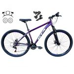 Bicicleta Aro 29 Gta Start Feminina Câmbios Shimano Freio Hidráulico 21v Mtb Alumínio Roxo Tam: 15Linda bike aro 29 em alumínio, nova na caixa a pronta entrega, produto com ótima qualidade e acabamento, possui 21 marchas com sistema de alavancas rapid fire que a cada clique uma marcha é trocada, câmbios Shimano, garfo com suspensão, sistema de freio a disco hidráulico . Segue abaixo características da bike:Quadro Gta Start AlumínioGarfo 29 suspensão curso 60mmSuporte do guidão em alumínio pretoGuidão 31.8mm pretoCanote do selim 27.2Selim Sport pretoAbraçadeira do Selim alumínio PretoAros Aero Parede dupla reforçadoRaios PretosCubos Pretos com blocagensPneus 29 CravudinhosMovimento central selado rolamentadoFreios a disco hidráulico com discos inox 160mmAlavancas Semi-automáticas Rapid FireCâmbio Traseiro Shimano TZCâmbio Dianteiro Shimano TZCorrente IndexPedivela Aço RevestidoPedal Plataforma Nylon pretoRoda Livre 7v index (rosca)Bicicleta pré montada, vai precisar apenas fixar a roda dianteira, guidão, selim e pedais. Recomendamos que seja feita uma revisão por um técnico após a recebimento do produto, para reajuste e regulagem, pois no transporte pode acontecer de alguma peça soltar ou desregularFotos meramente ilustrativas