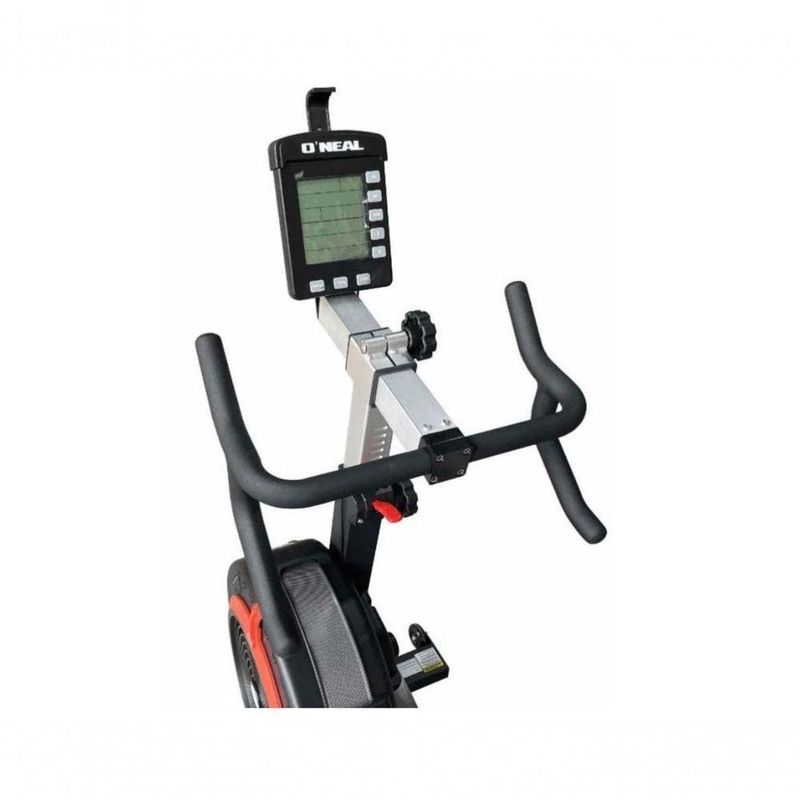 Bicicleta Bike Spinning Com Roda De Inércia 13kg FitnessLeve seus treinos de spinning a um novo nível com a Bicicleta Spinning Ergométrica O'Neal BF850 com Resistência a Ar!Ideal para uso residencial, academias, estúdios e condomínios, a BF850 alia tecnologia, desempenho e conforto em um design moderno e robusto. Seu sistema de resistência a ar oferece um treino dinâmico e ajustável com até 10 níveis, se adaptando à sua evolução.Resistência: Ventilador com 10 níveis de ajusteBanco: Ergonômico com ajuste de altura e distância e guidão revestido, proporcionando melhor contato (17 posições de regulagem)Monitor: LCD com leitura de tempo, distância, calorias, ciclo e pulso (cinta não inclusa)Extras: Gerador de energia embutido, suporte para celular, rodas de transporte e estabilizadoresEstrutura: Viga central em alumínio com acabamento reforçado e proteção contra suorTreine com performance, conforto e segurança. A BF850 é a escolha certa para quem busca qualidade profissional em casa ou no studio!
