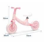 Bicicleta De Equilíbrio Infantil Sem Pedal Rosa RegulávelBicicleta de Equilíbrio Infantil Sem Pedal Rosa, Aprendizado Seguro e DivertidoA Bicicleta de Equilíbrio Infantil Sem Pedal Rosa é a escolha perfeita para introduzir as crianças no mundo do ciclismo de forma segura, educativa e divertida. Indicada para crianças a partir de 3 anos, ela auxilia no desenvolvimento do equilíbrio, coordenação motora, postura e autoconfiança, preparando os pequenos para a futura transição para bicicletas com pedal.Sem pedais, essa bicicleta permite que a criança utilize os pés para impulsão e frenagem, promovendo um aprendizado natural e intuitivo do equilíbrio sobre duas rodas. Esse método é amplamente recomendado por especialistas por estimular o controle corporal e a independência desde cedo.Seu design delicado na cor rosa, com detalhes florais encantadores, conquista crianças e pais, unindo beleza, funcionalidade e segurança. A estrutura é leve, resistente e fácil de manusear, ideal para o uso diário, enquanto o assento regulável em altura acompanha o crescimento da criança, aumentando a vida útil do produto.As rodas largas, firmes e silenciosas oferecem excelente estabilidade e permitem o uso tanto em ambientes internos quanto externos, como quintais, calçadas, áreas de lazer ou até dentro de casa. Fabricada com materiais de qualidade e acabamento seguro, essa bicicleta é perfeita para momentos de lazer, aprendizado e desenvolvimento infantil.Principais Benefícios:- Estimula o equilíbrio e a coordenação motora- Auxilia no desenvolvimento da autoconfiança- Sem pedais: aprendizado natural e seguro- Assento regulável que acompanha o crescimento- Leve, resistente e fácil de manusear- Uso interno e externo- Design infantil delicado e atrativoEspecificações Técnicas:- Altura: 52 cm- Largura: 73 cm- Comprimento: 30 cm- Material: Plástico resistente- Capacidade Máxima: Até 30 kg- Peso do Produto: 1,5 kg- Cor: RosaCertificação: CE-BIC/INNAC 02582-01A – NM301/2002Conteúdo da Embalagem:- 01 Bicicleta de Equilíbrio Infantil Sem Pedal – RosaBicicleta de Equilíbrio Infantil Sem Pedal Rosa, Aprendizado Seguro e DivertidoA Bicicleta de Equilíbrio Infantil Sem Pedal Rosa é a escolha perfeita para introduzir as crianças no mundo do ciclismo de forma segura, educativa e divertida. Indicada para crianças a partir de 3 anos, ela auxilia no desenvolvimento do equilíbrio, coordenação motora, postura e autoconfiança, preparando os pequenos para a futura transição para bicicletas com pedal.Sem pedais, essa bicicleta permite que a criança utilize os pés para impulsão e frenagem, promovendo um aprendizado natural e intuitivo do equilíbrio sobre duas rodas. Esse método é amplamente recomendado por especialistas por estimular o controle corporal e a independência desde cedo.Seu design delicado na cor rosa, com detalhes florais encantadores, conquista crianças e pais, unindo beleza, funcionalidade e segurança. A estrutura é leve, resistente e fácil de manusear, ideal para o uso diário, enquanto o assento regulável em altura acompanha o crescimento da criança, aumentando a vida útil do produto.As rodas largas, firmes e silenciosas oferecem excelente estabilidade e permitem o uso tanto em ambientes internos quanto externos, como quintais, calçadas, áreas de lazer ou até dentro de casa. Fabricada com materiais de qualidade e acabamento seguro, essa bicicleta é perfeita para momentos de lazer, aprendizado e desenvolvimento infantil.Principais Benefícios:- Estimula o equilíbrio e a coordenação motora- Auxilia no desenvolvimento da autoconfiança- Sem pedais: aprendizado natural e seguro- Assento regulável que acompanha o crescimento- Leve, resistente e fácil de manusear- Uso interno e externo- Design infantil delicado e atrativoEspecificações Técnicas:- Altura: 52 cm- Largura: 73 cm- Comprimento: 30 cm- Material: Plástico resistente- Capacidade Máxima: Até 30 kg- Peso do Produto: 1,5 kg- Cor: RosaCertificação: CE-BIC/INNAC 02582-01A – NM301/2002Conteúdo da Embalagem:- 01 Bicicleta de Equilíbrio Infantil Sem Pedal – Rosa