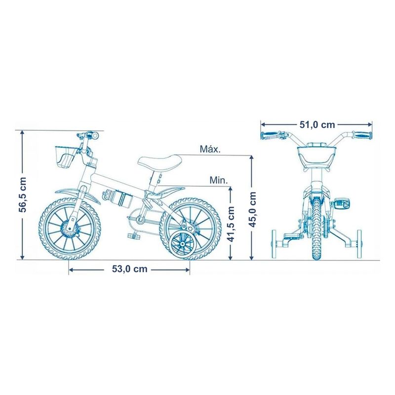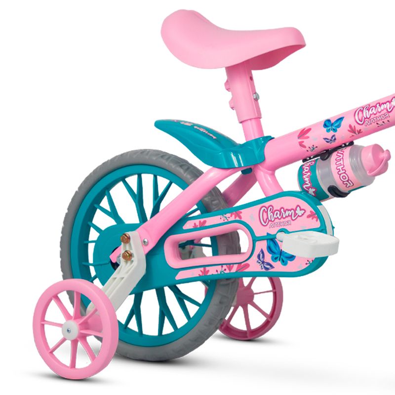 Bicicletas Aro 12" Charm | Nathor As bicicletas aro 12" Nathor são equipadas com os melhores itens de segurança e conforto para crianças. Com o limitador de giro, a criança garante mais equilíbrio e segurança ao pedalar. A regulagem de ângulo do guidão e da altura do selim permitem que a postura do ciclista se mantenha correta, além de possibilitar que a bicicleta seja usada por mais tempo acompanhando o crescimento. O movimento central avançado facilita o pedalar, estimulando o aprendizado. A aro 12" Nathor também tem uma relação de transmissão que foi desenvolvida para que a velocidade que a criança atinge pedalando seja a mesma de um adulto andando; ou seja: os pais conseguem acompanhar a brincadeira com tranquilidade, garantindo ainda mais segurança durante a diversão! Resistência e segurança para começar a pedalar!Indicada para crianças a partir de 3 anos ou com altura entre 90cm e 1 metro. Limitador de giro do guidãoA bicicleta aro 12" possui um mecanismo que impede que o guidão gire além do necessário. O Limitador evita acidentes, permitindo um pedalar com muito mais tranquilidade e segurança. Movimento central avançadoEsta tecnologia permite que a criança fique de forma confortável e ergonômica no selim com a distância ideal ao pedal. A criança olha para frente com facilidade e ao parar, consegue facilmente apoiar os pés no chão. Maçaneta do freioA maçaneta da aro 12" foi feita para induzir o local aonde a criança irá utilizar sua força para frear, assim garantimos a maior eficiência do freio, trazendo mais segurança para a criança. Regulagem de ângulo de guidãoA aro 12" possui guidão ajustável, conforme a criança vai crescendo, você pode regular o guidão permitindo que a postura se mantenha adequada. Rodinhas lateraisAs rodinhas servem para auxiliar o aprendizado e fazer com que a criança desenvolva o equilíbrio para, depois, pedalar sem essa ajuda. É comum achar que as rodinhas estão mal ajustadas, já que apenas uma delas toca o chão. Mas é exatamente isso que garante a função do acessório! Enquanto pedala, a criança tenta se equilibrar, fazendo com que a bike faça esse movimento de ir de um lado para o outro. • Quadro, garfo e guidão em aço carbono• Limitador de giro do guidão• Pneus em E.V.A.• Cestinha ou plaquinha• Mesa de direção em nylon reforçado• Selim com regulagem de altura• Freio dianteiro a tambor• Trava de segurança Especificações Técnicas: Marca: NathorModelo/Personagem: CharmTamanho da roda: 12"Idade recomendada: + 3 anosAltura máxima recomendada: 90 cm a 100 cmPeso máximo recomendado: 21 kgRegistro INMETRO: CE-BI/INNAC 00407-01A NM 301/2004Regulagem da altura do banco: Mínima 41,5 - Máxima 45cmDimensões do produto (C x A x L): 82cm x 56,5cm x 51cmPeso do produto: 3,980 Kg Atenção: o produto pode conter variação no modelo do aro.