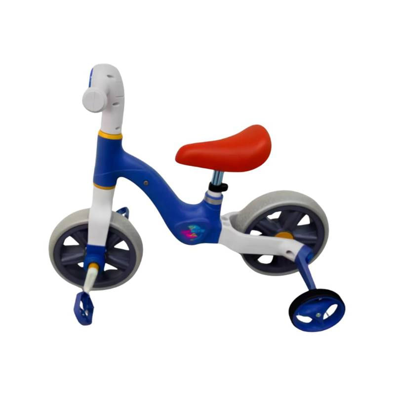 Bicicleta Infantil de Equilíbrio Azul 2 em 1 com Rodinhas ===================================== Projetada especialmente para acompanhar as primeiras aventuras dos pequenos sobre duas rodas. Com um design moderno, colorido e super seguro, ela é ideal para estimular o equilíbrio, a coordenação motora, a concentração e a autoconfiança das crianças desde cedo. Versátil e funcional, pode ser utilizada tanto como bicicleta de equilíbrio, ajudando a criança a aprender a se equilibrar de forma natural, quanto com rodinhas de apoio, oferecendo estabilidade extra enquanto o pequeno ciclista ganha segurança para pedalar sozinho. Indicada para crianças a partir de 2 anos de idade, é perfeita para incentivar o desenvolvimento físico e emocional, promovendo momentos de lazer, descobertas e aprendizado. Seja para presentear em aniversários, datas comemorativas ou simplesmente para ver um sorriso de alegria no rosto do seu pequeno. Acompanha chaves e parafusos para montagem. ===================================== Contém: 01 Bicicleta Especificações: - Material: Plástico e Borracha - Medida: 55cm x 29cm x 69cm - Cor: Azul - Peso: 3900 gramas - REGISTRO INMETRO: 006252/2022 ===================================== Devido à diferença entre monitores e iluminação diferentes, pode haver variação na tonalidade apresentada no anúncio. Medidas muito aproximadas.