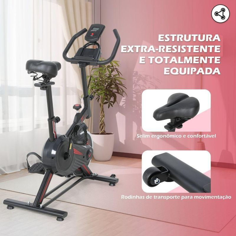BICICLETA ERGOMÉTRICA SPINNING MECÂNICA WONDERFIT GO 4KG WSB04HBTA-VMGaranta mais saúde, energia e qualidade de vida com a Bicicleta Ergométrica Spinning Mecânica Wonderfit. Com sistema de resistência mecânica, o modelo é ideal para treinos iniciais e residenciais, oferecendo conforto e desempenho para quem quer praticar exercícios aeróbicos sem sair de casa. Ela conta com roda de inércia de 4 kg, selim e apoios de braço ajustáveis e monitor com leitura de dados essenciais para o acompanhamento do treino. Seu funcionamento por correia proporciona pedaladas suaves Com design moderno, é uma ótima opção para quem busca praticidade e motivação para treinar todos os dias.Características do Produto:Design compacto e eficiente: Com estrutura em tubo de aço e acabamento moderno, é perfeita para quem quer montar um espaço fitness em casa com conforto e segurança.Roda de inércia de 4 kg: Ideal para treinos leves e moderados, com pedaladas mais estáveis que contribuem para o desenvolvimento do condicionamento físico.Sistema de resistência mecânico: O ajuste é feito manualmente por meio de botões “+” e “–”, o que permite adaptar a intensidade do treino conforme o seu objetivo.Transmissão por correia: Além de suave, a correia exige menos manutenção do que sistemas de corrente, oferecendo maior durabilidade ao equipamento.Display com funções essenciais: O painel digital exibe informações como tempo, velocidade, distância, calorias, modo SCAN e odômetro (ODO), auxiliando no monitoramento da performance durante os treinos.Ajustes ergonômicos: Tanto o assento quanto os apoios de braço podem ser regulados para se adequar à altura do usuário, proporcionando maior conforto e segurança.Freio de segurança: O equipamento conta com sistema de parada rápida para garantir a segurança em caso de necessidade durante o exercício.Rodas para transporte integradas: Facilita o deslocamento da bike dentro de casa, tornando o equipamento mais prático e funcional no dia a dia.Com suporte para celular: A base permite que você posicione seu celular com segurança durante o treino, ideal para quem gosta de acompanhar vídeos, ouvir música ou usar apps de treino.Dúvidas Frequentes:A bicicleta é mecânica ou magnética?Este modelo é mecânico, com ajuste manual de resistência por botões “+” e “–”.Tem suporte para celular?Sim. O equipamento conta com suporte acoplado para posicionar o celular com segurança durante o treino.É indicada para qualquer altura?Ela é recomendada para usuários com altura entre 1,50 m e 1,80 m e com peso de até 120 kg.Qual a cor da bike?Essa bike é vermelha com preto, mas ela também está disponível na cor amarela com preto.Ela possui sensores para monitorar batimentos cardíacos?Não. Este modelo não possui sensores de frequência cardíaca (hand grip).Funciona com energia elétrica?Não. O display digital funciona com 2 pilhas AA, tornando o uso mais prático e econômico.O equipamento serve para treinos profissionais?Não. O equipamento é de entrada, ideal para iniciantes e treinos residenciais.A bike possui suporte para garrafa?Não, esse modelo não acompanha suporte para garrafas.Especificações Técnicas:Marca: WonderfitModelo: WSB04HBTA-VMClassificação de Uso: ResidencialCor: Vermelho com PretoAltura Min e Max Indicada: 1,50 m / 1,80 mPeso Máximo do Usuário: 120 kgPeso da Roda de Inércia: 4 kgMaterial: Tubo de aço, espuma, plástico, borrachaFunções do Display: SCAN, Tempo, Velocidade, Distância, Calorias, ODOMonitoramento de Frequência Cardíaca: Não possuiFonte de Alimentação do Display: 2 pilhas AAProgramas de Treinamento: Não possui programas pré-definidosNíveis de Resistência: Ajuste por botões “+/-”, sem indicação numéricaRodas para Transporte: SimSuporte para Celular: SimSuporte para Garrafa: NãoSistema de Resistência: MecânicoSistema de Transmissão: CorreiaAjustes Ergonômicos: Apoio de braços e assento ajustáveisSelim: AjustávelRevestimento do Guidão: EspumaFreio de Segurança: SimDobrável: NãoBluetooth: Não possuiDimensões do Produto (CxLxA): 92 x 45 x 110 cmDimensões da Embalagem (CxLxA): 84 x 19 x 70 cmPeso Líquido: 15,5 kgPeso Bruto: 18 kgGarantia: 6 meses