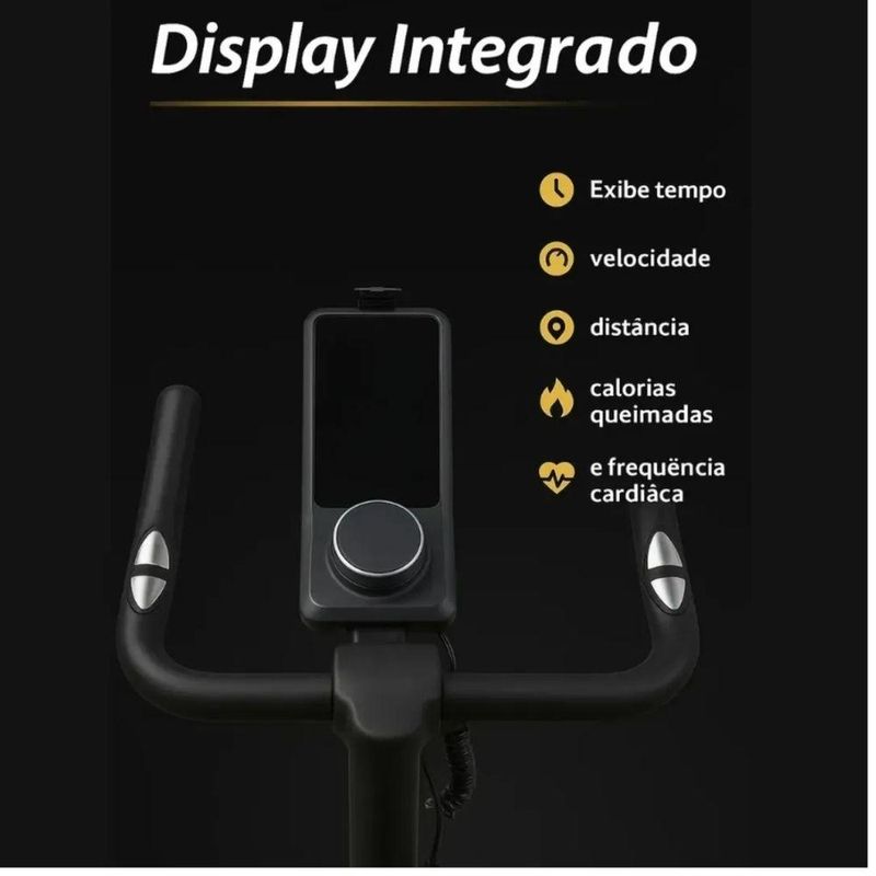 Bicicleta Spinning Profissional Até 150kg Ahead Sports Com Display DigitalA Bicicleta Ergométrica de Spinning Profissional Ahead Sports foi desenvolvida para quem busca treinos de alta performance no conforto de casa. Com tração por correia, gerador próprio e estrutura estável, oferece pedaladas silenciosas, seguras e ideais para treinos de cardio, resistência e definição muscular.Projetada para entregar uma experiência semelhante às melhores academias, ela combina suavidade, silêncio e durabilidade para treinos intensos e eficientes. O volante de inércia proporciona mais fluidez e realismo no giro, favorecendo treinos moderados e avançados. O sistema Belt Drive reduz ruídos e vibrações, permitindo treinar a qualquer hora sem incomodar outras pessoas.Seu gerador próprio dispensa o uso de tomadas, garantindo liberdade total de posicionamento e economia de energia. Com pedais em liga de alumínio e estrutura robusta, a bicicleta oferece alta estabilidade mesmo nos treinos mais exigentes. O display digital integrado facilita o acompanhamento da evolução, exibindo velocidade, distância, calorias, tempo e frequência cardíaca.Principais Características:Pedalada extremamente silenciosa com sistema Belt DriveGerador próprio: dispensa tomadaVolante de inércia para giro fluido e realistaPedais fabricados em liga de alumínioEstrutura reforçada e estável para treinos intensosDisplay digital com métricas completasIdeal para treinos de cardio, resistência e forçaBaixa manutenção e alta durabilidadeEspecificações Técnicas:Cor: PretaMarca: Ahead SportsModelo: ProfissionalPeso Máximo Suportado: 120 kgMaterial dos pedais: Liga de alumínioTração: Correia (Belt Drive)Alimentação: Gerador próprioDisplay Digital: Tempo, velocidade, distância, calorias, frequência cardíacaDimensões: 112 × 49 × 110 cmConteúdo da Embalagem:1 Bicicleta de Spinning Ahead SportsGarantia:3 meses contra defeitos de fabricaçãoImagens meramente ilustrativas