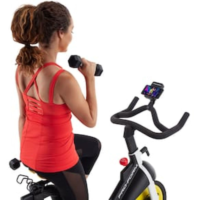 Pratique atividades físicas no conforto do seu lar, com muita qualidade e conveniência, com a Bicicleta Spinning ProForm Tour de France CLC! Ela tem 16 níveis de resistência digital, sendo que cada um deles é suave, sem atrito e silencioso, graças ao avançado sistema SMR - Silent Magnetic Resistance.Com dois halteres de 3kg cada, o equipamento faz com que você, além de tonificar as pernas, desenvolva a parte superior do corpo, trabalhando ainda mais musculaturas, em um exercício completo.No moderno display LCD, a ProForm Tour de France apresenta as informações sobre velocidade, pulso, calorias, resistência, RPM, tempo e distância da sua atividade. Você vai sentir todo o conforto do assento ergonômico, que tem ajustes personalizados tanto na vertical quanto na horizontal, para praticar por várias horas, sem qualquer incômodo!